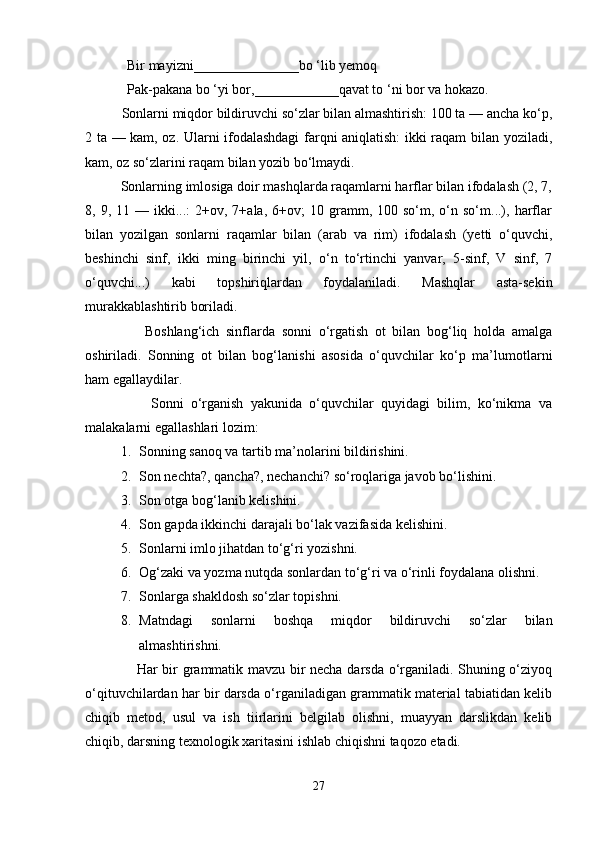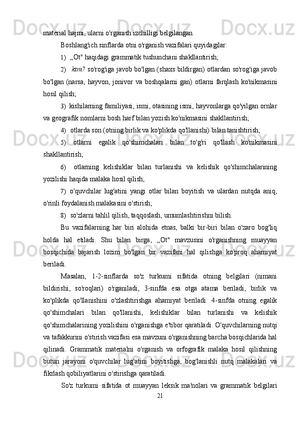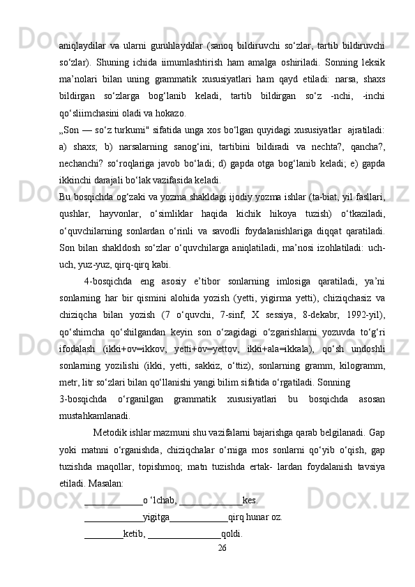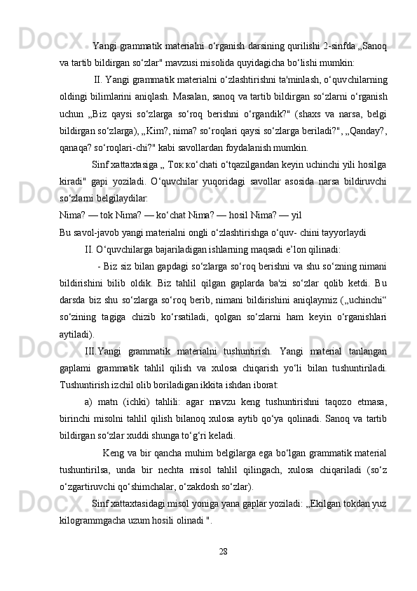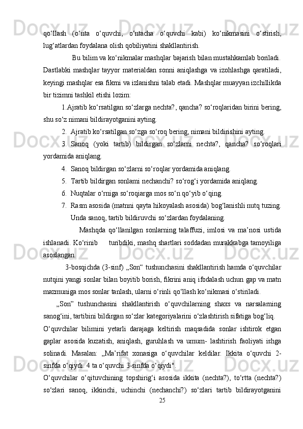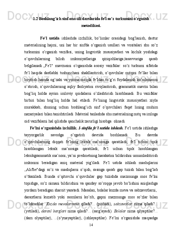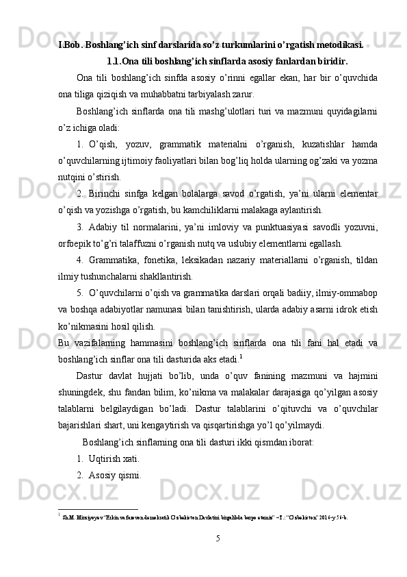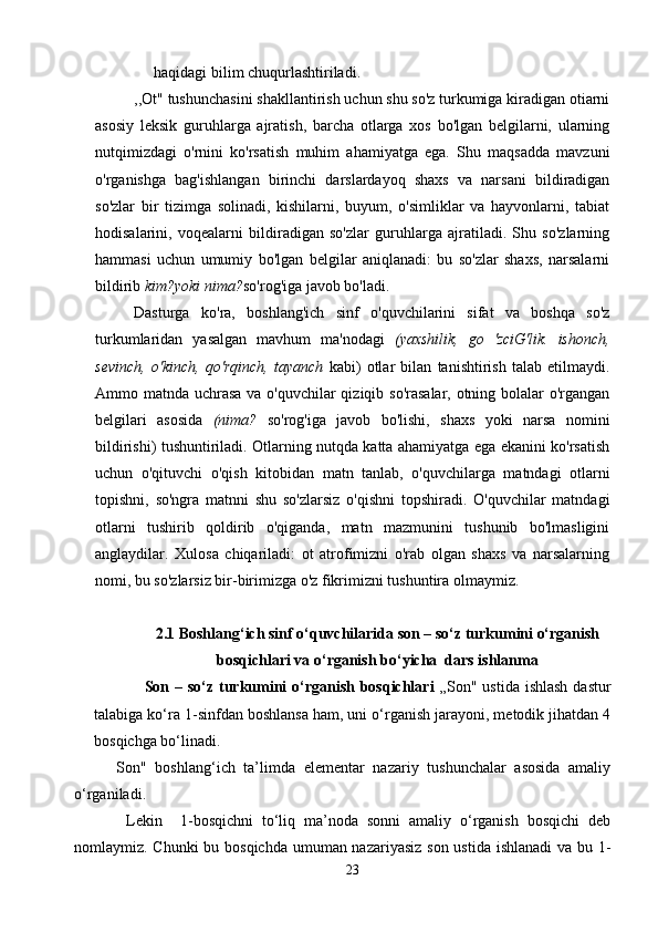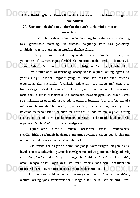 Boshlang’ich sinf ona tili va o’qish savodxonligi darslarida so’z turkumlarini o’rgatish metodikasi.