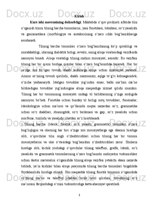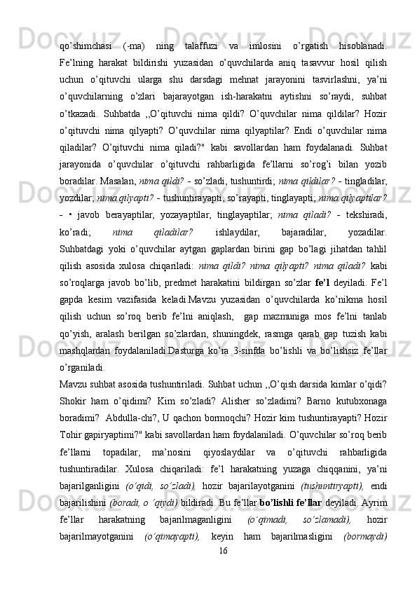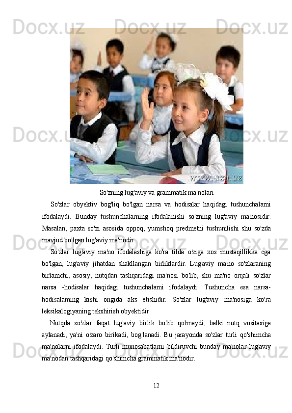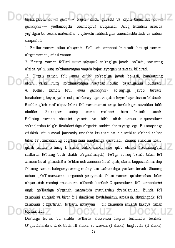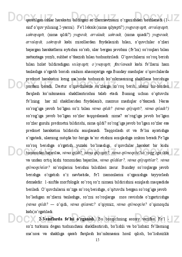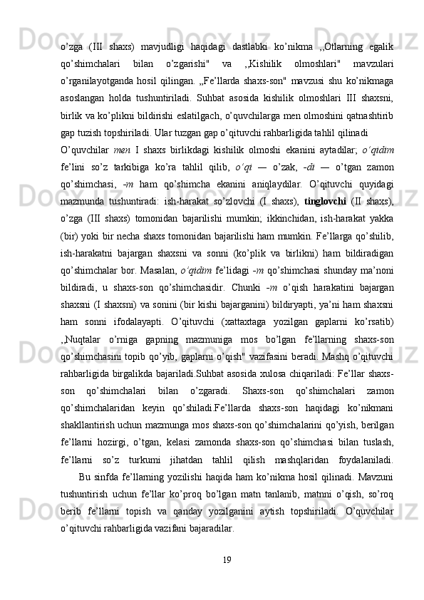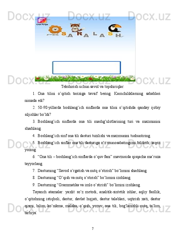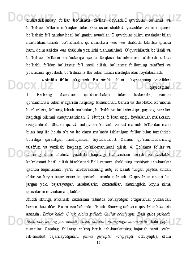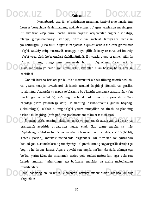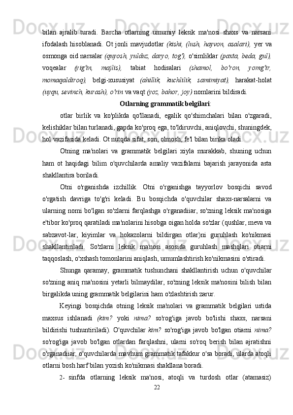 Boshlang’ich sinf ona tili va o’qish savodxonligi darslarida so’z turkumlarini o’rgatish metodikasi.