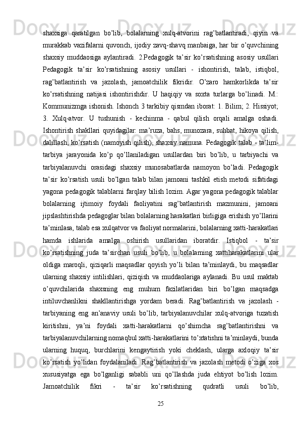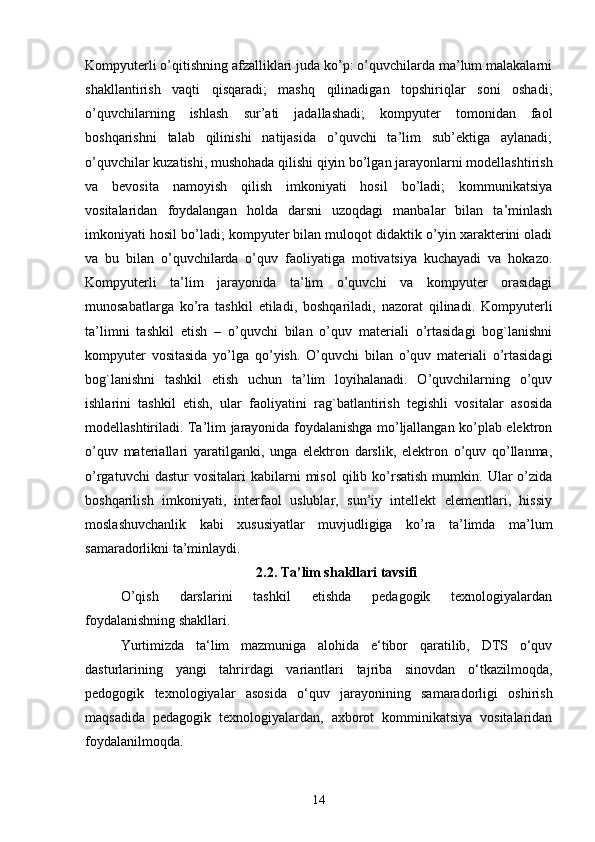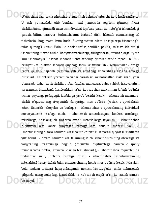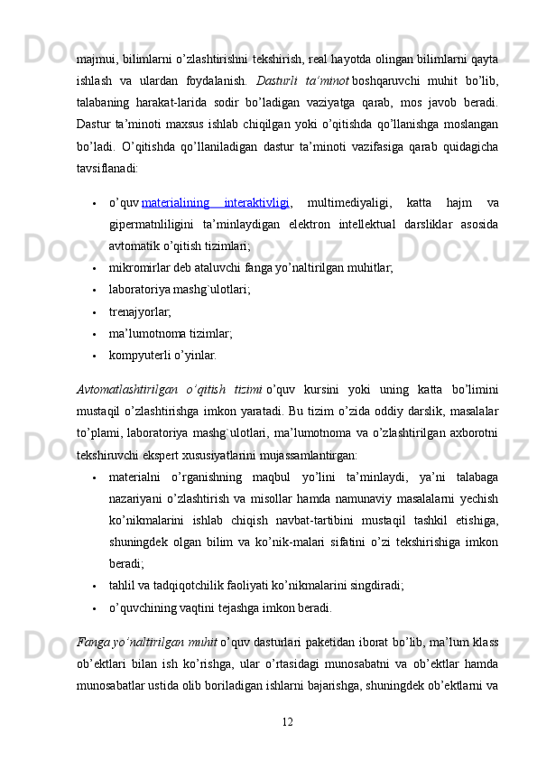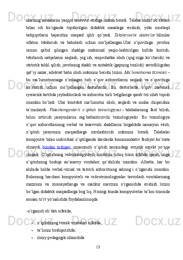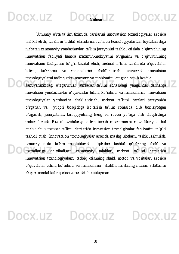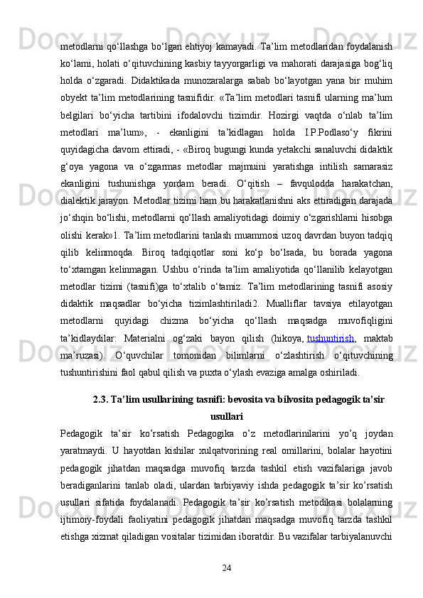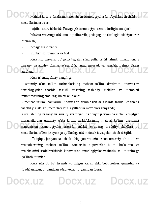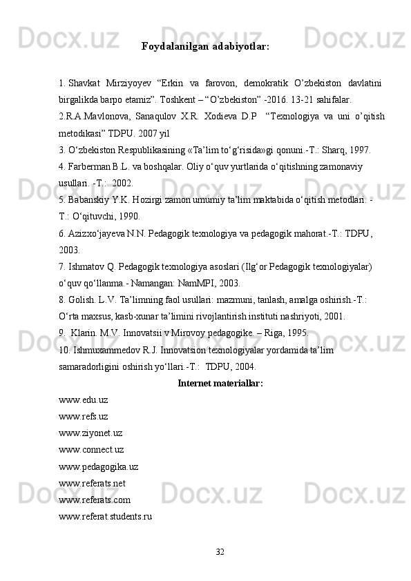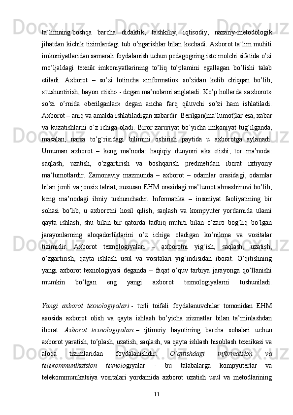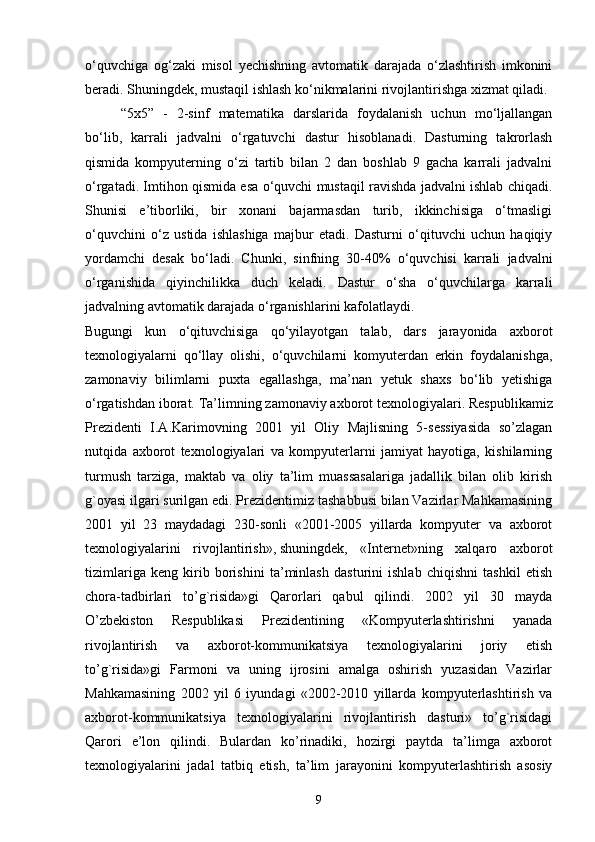 Boshlang’ich sinf texnologiya darslarida zamonaviy (innovatsion, pedagogik, axborot texnologiyalari) vositalaridan foydalanish