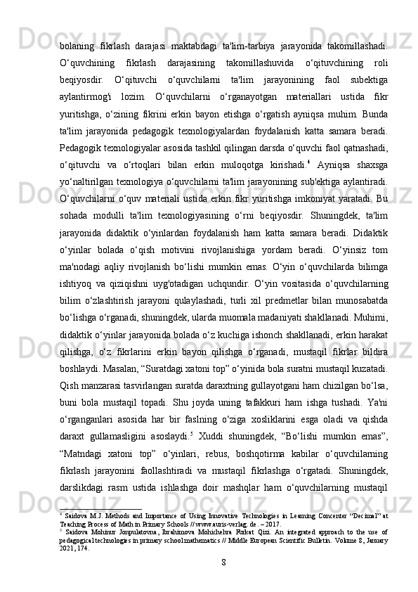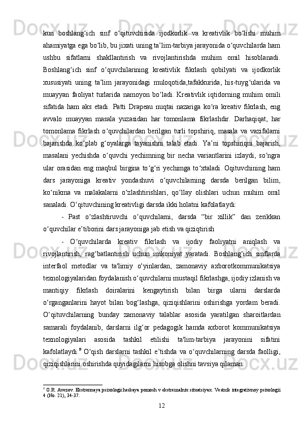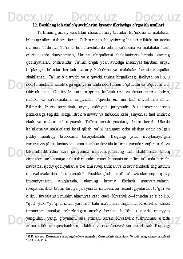 I.2. Boshlang'ich sinf o'quvchilarini kreativ fikrlashga o'rgatish usullari 11
