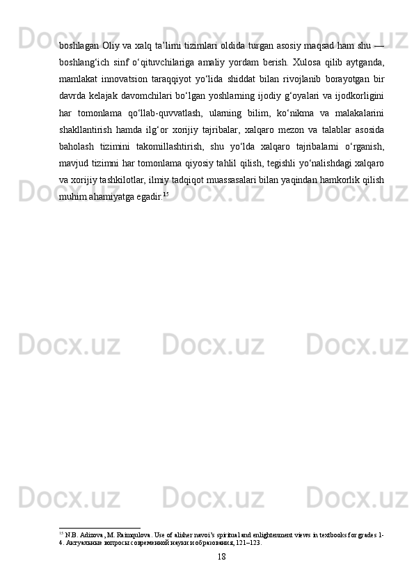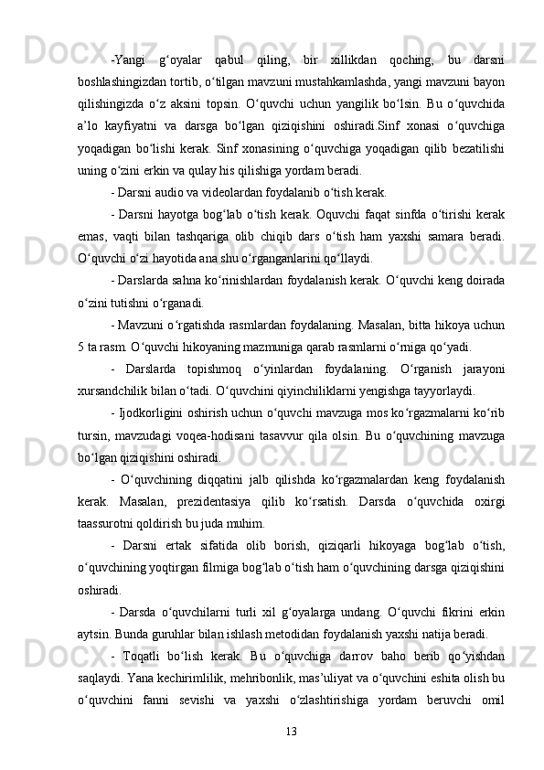 II BOB. BOSHLANG‘ICH SINF DARSLARIDA O‘QUVCHILAR MUSTAQILLIGINI BAHOLASH VA RAG‘BATLANTIRISH.. 15