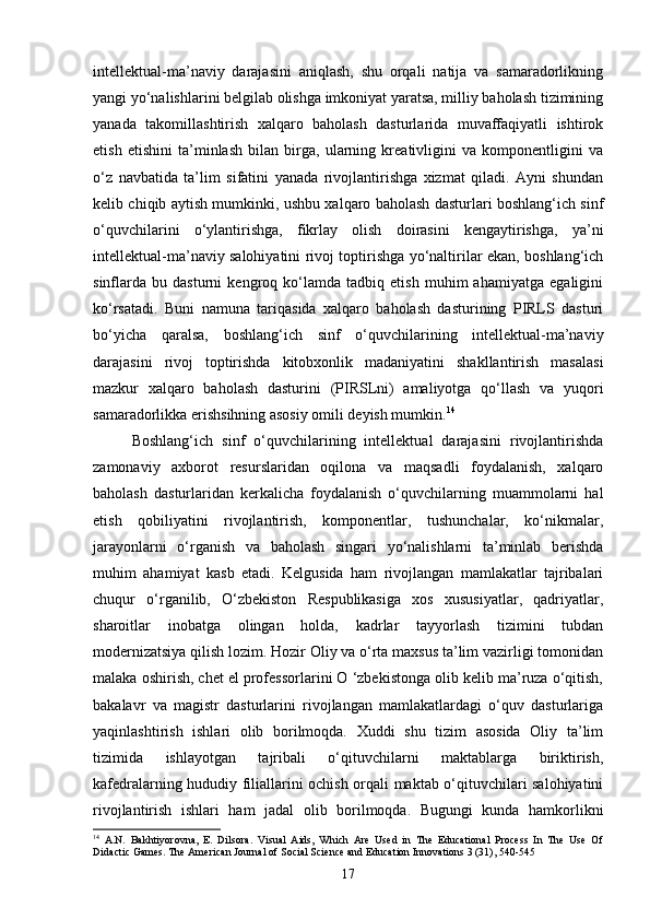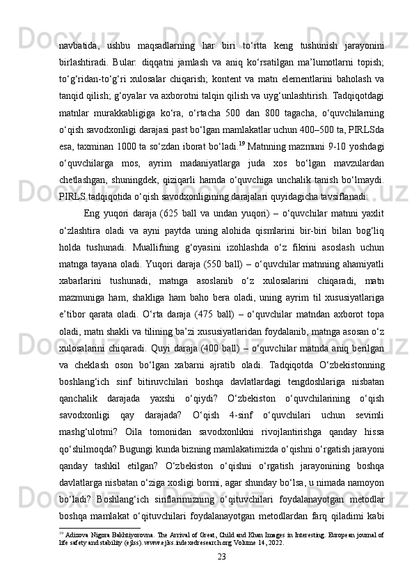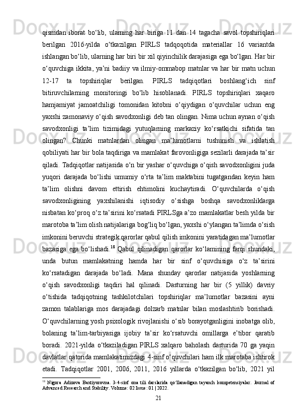 II.2. Boshlang‘ich sinflarda o‘quvchilar bilimini baholashda pirls dasturi 19
