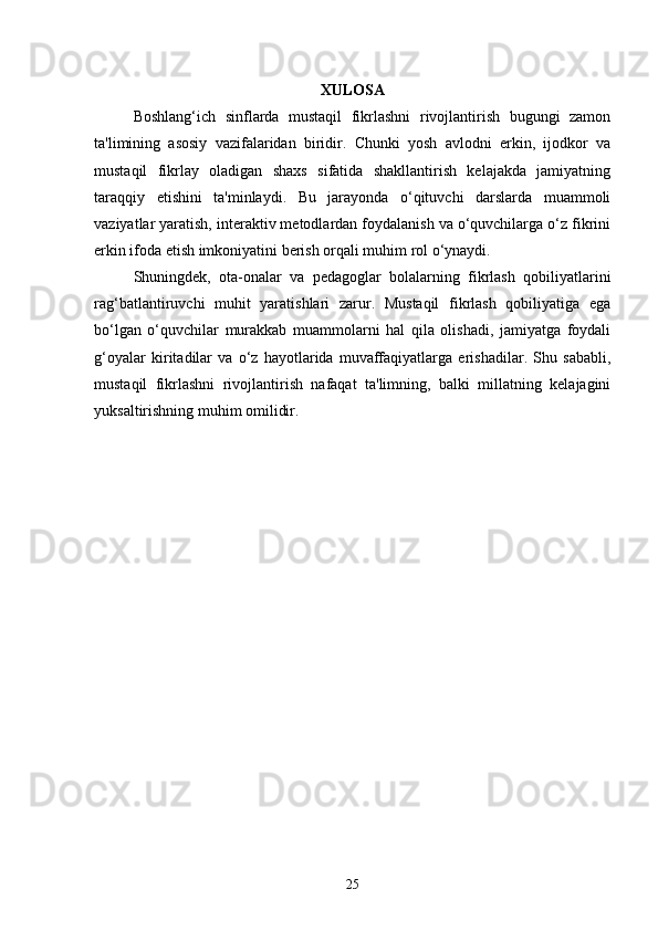 Boshlang’ich sinfda mustaqil fikrlashni rivojlantirish