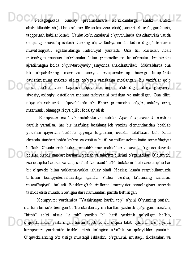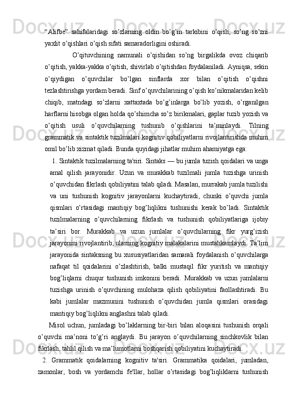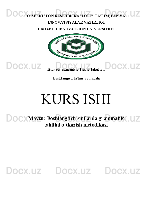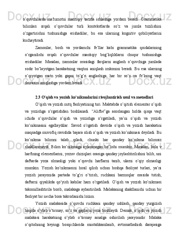 Boshlang’ich sinflarda grammatik tahlilni o’tkazish metodikasi