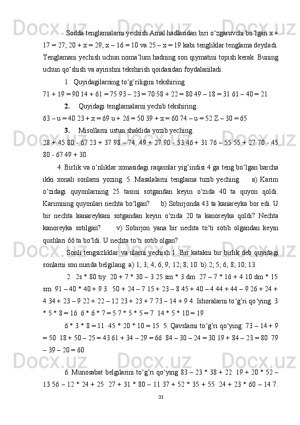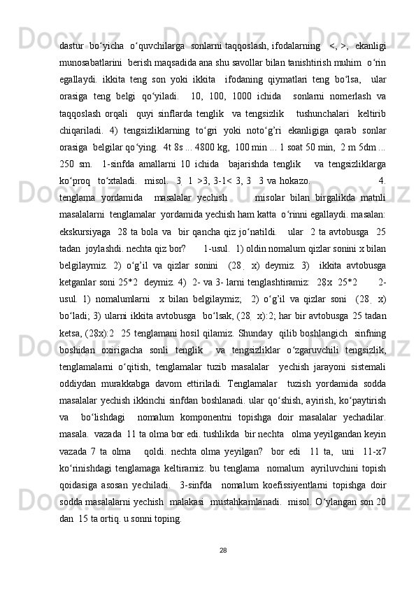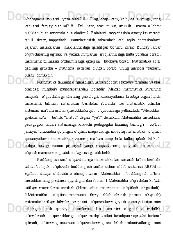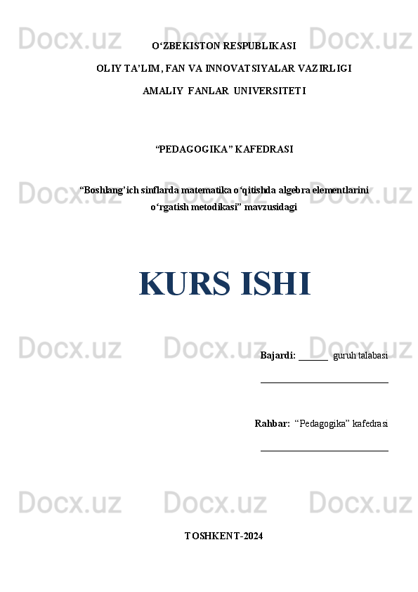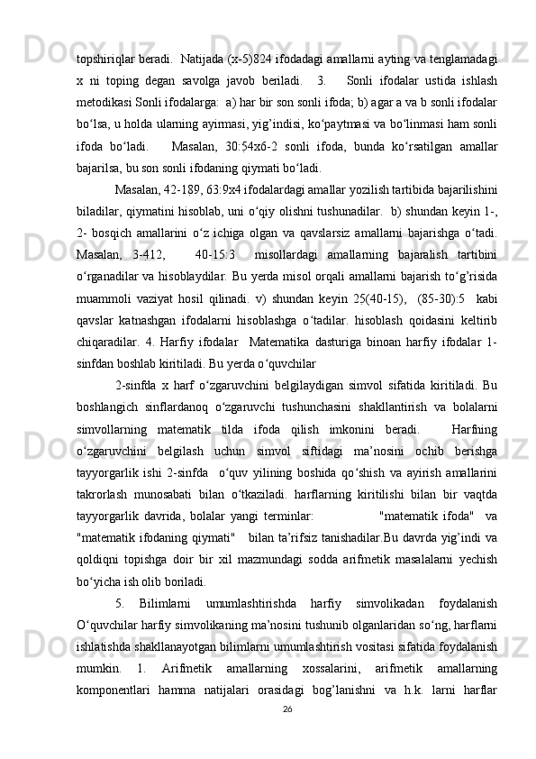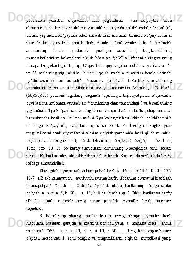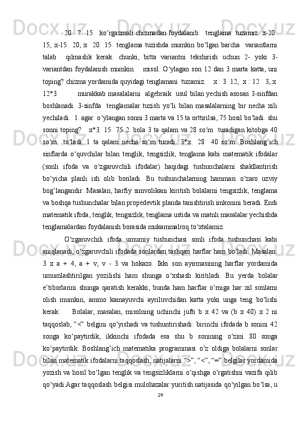 Boshlang’ich sinflarda matematika oʻqitishda algebra elementlarini oʻrgatish metodikasi
