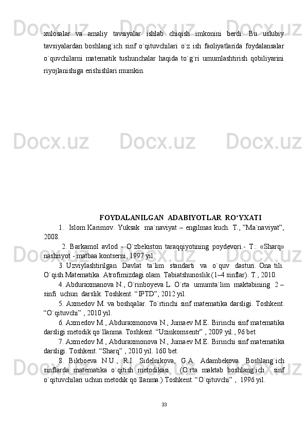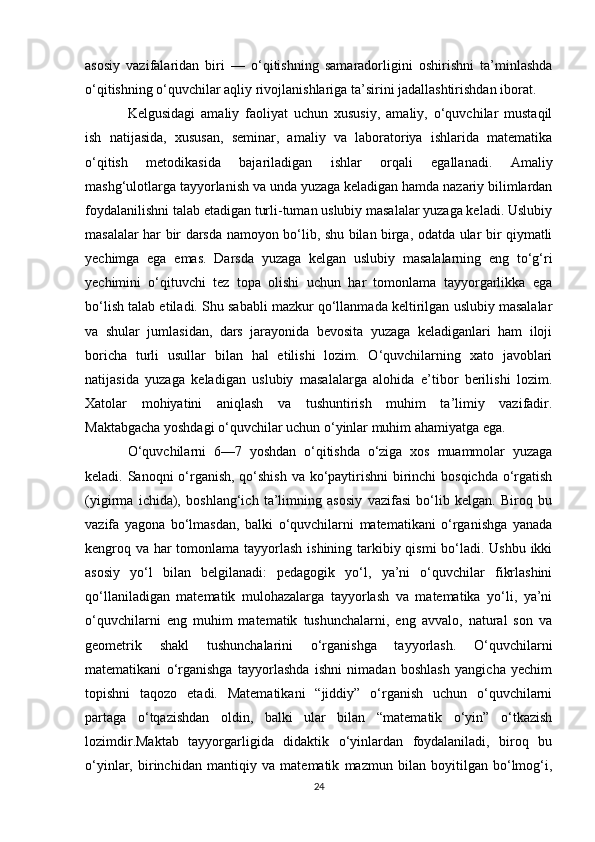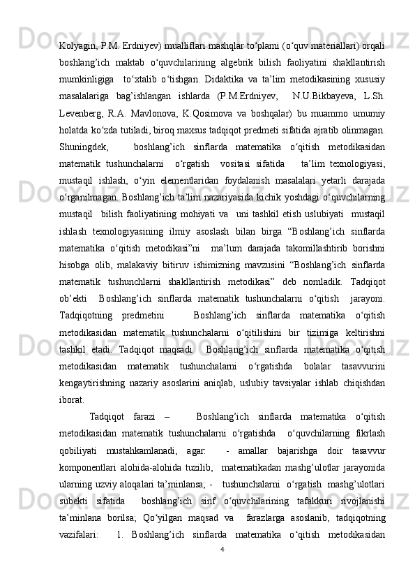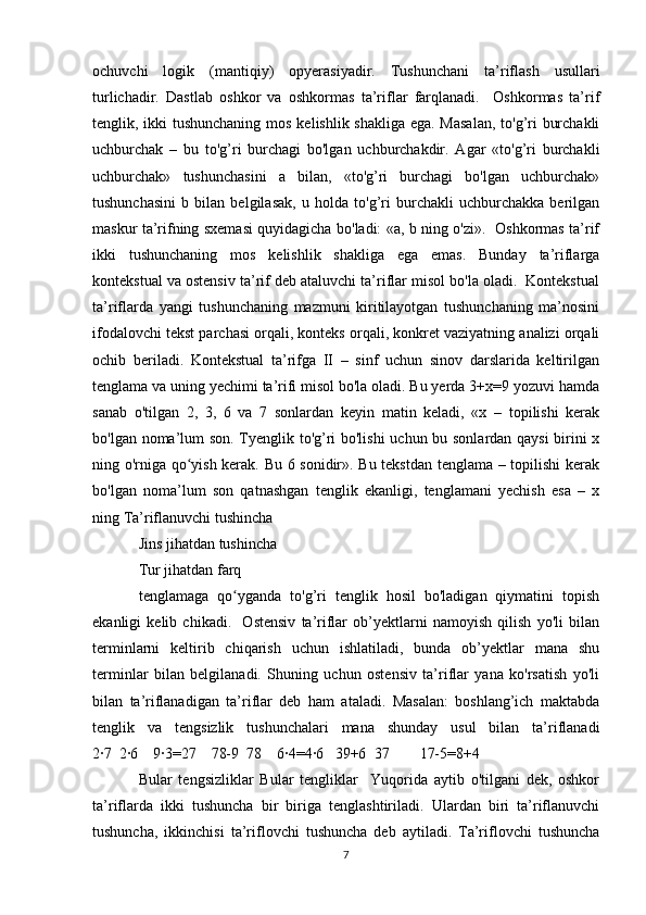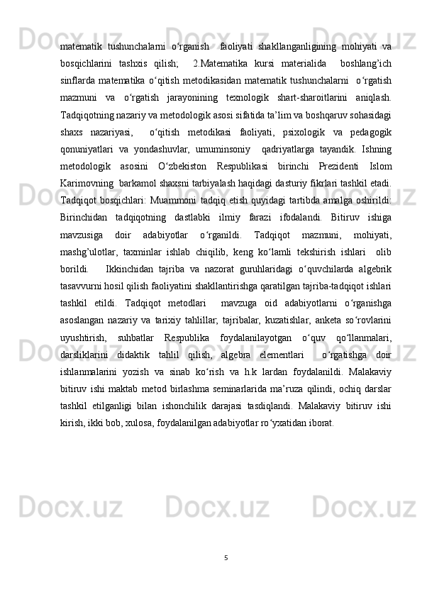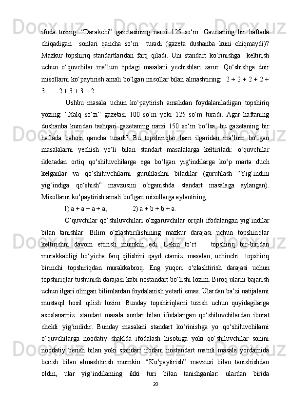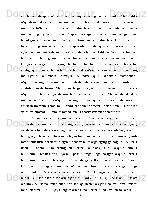 Boshlang’ich sinflarda matematika oʻqitishda algebra elementlarini oʻrgatish metodikasi