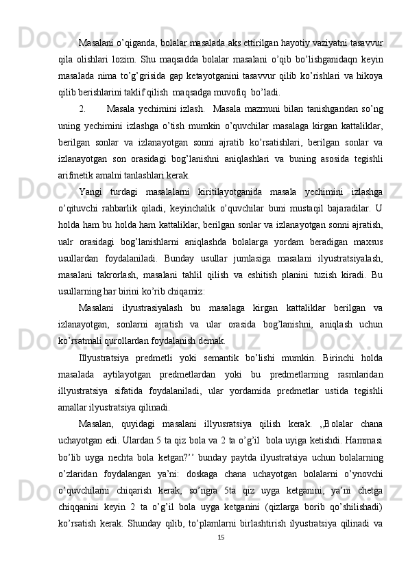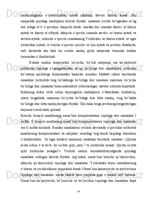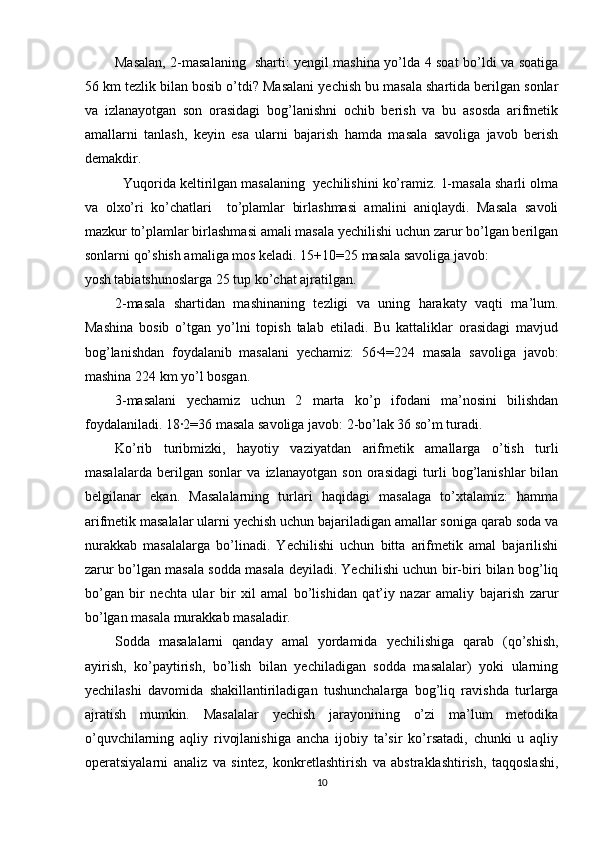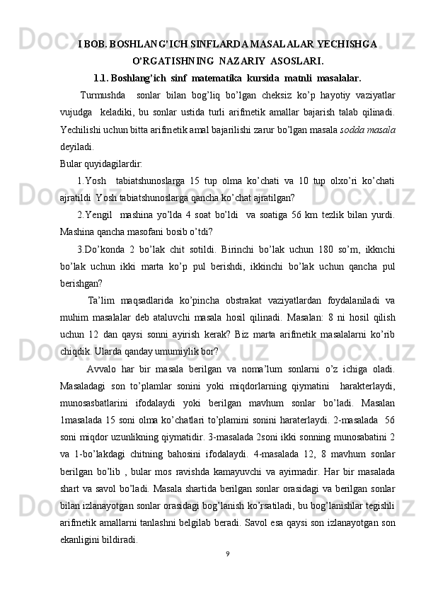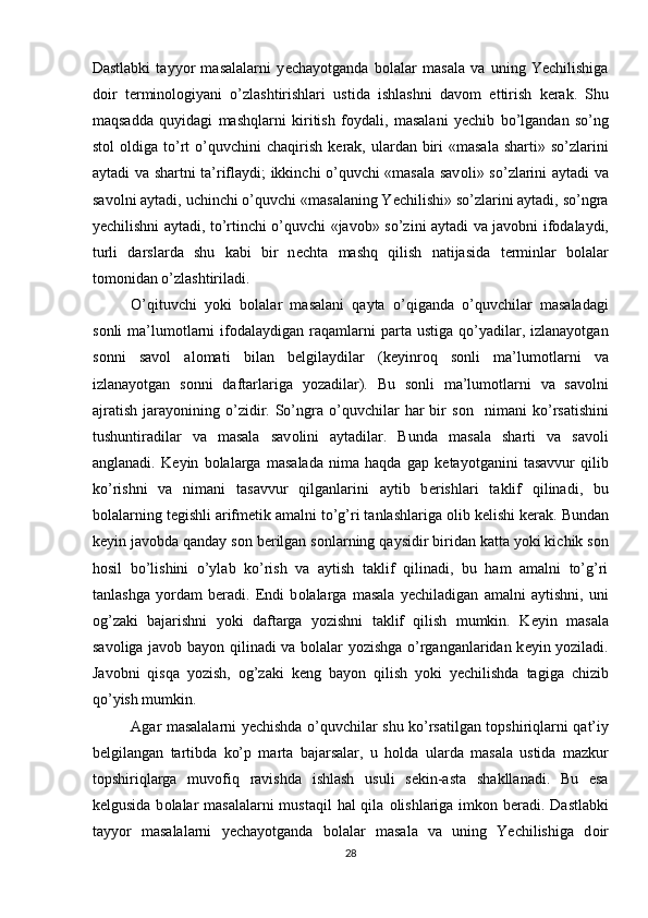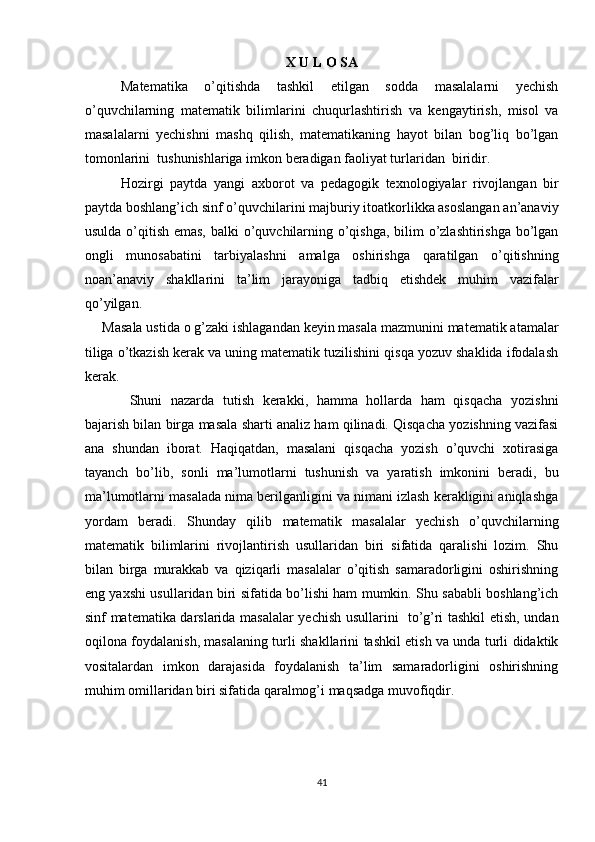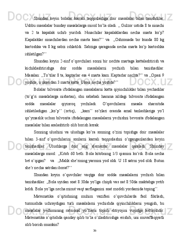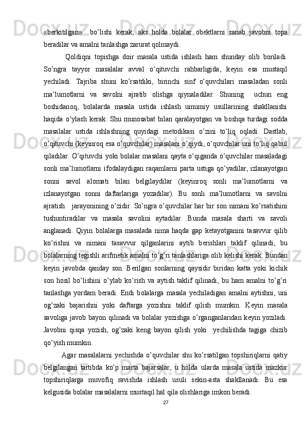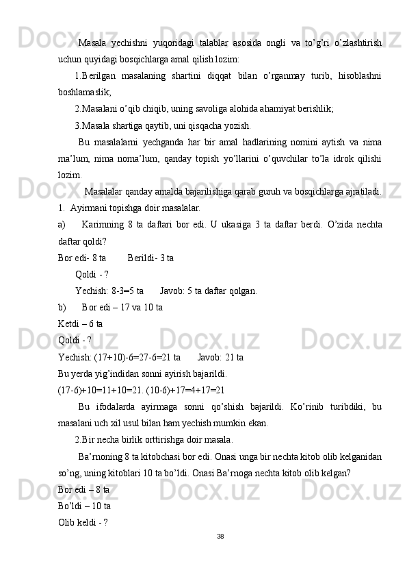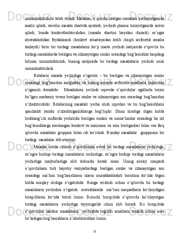 Boshlang’ich sinflarda matematika o’qitishda masalalar yechishning umumiy masalalari