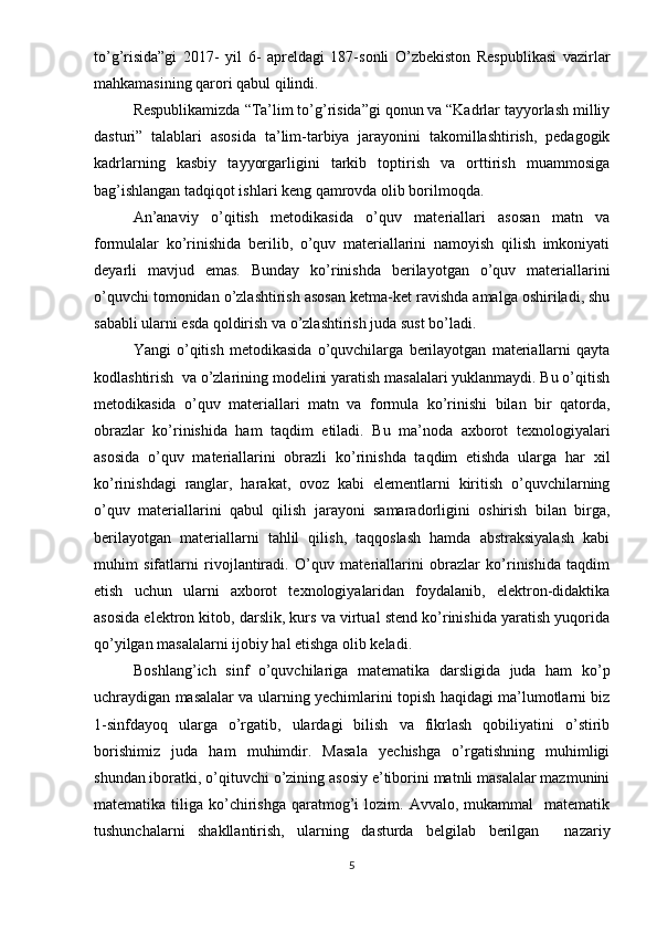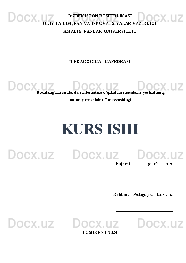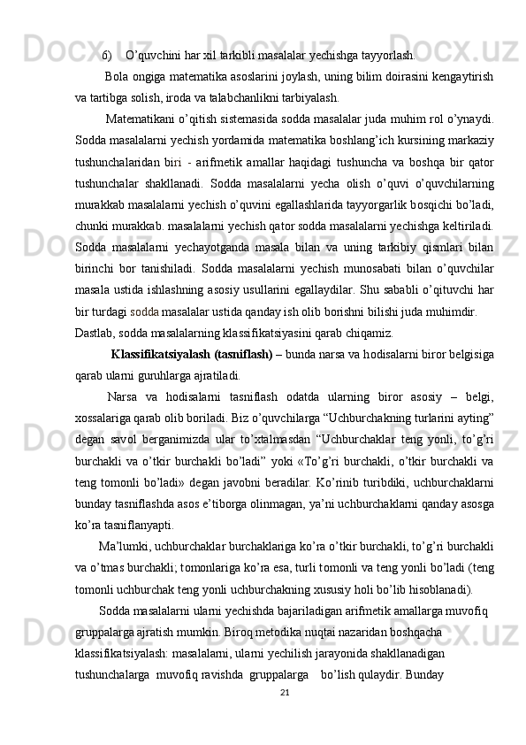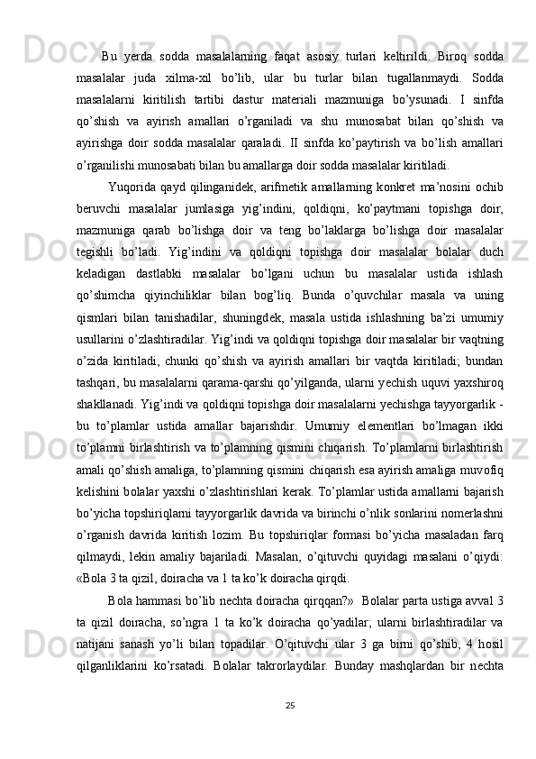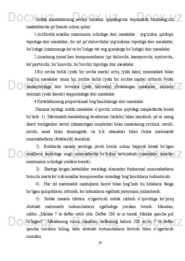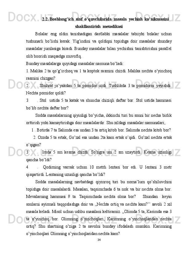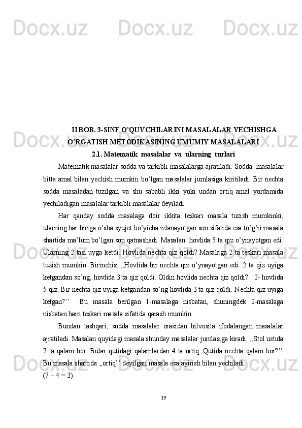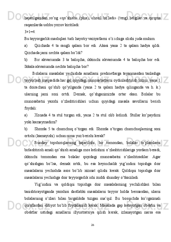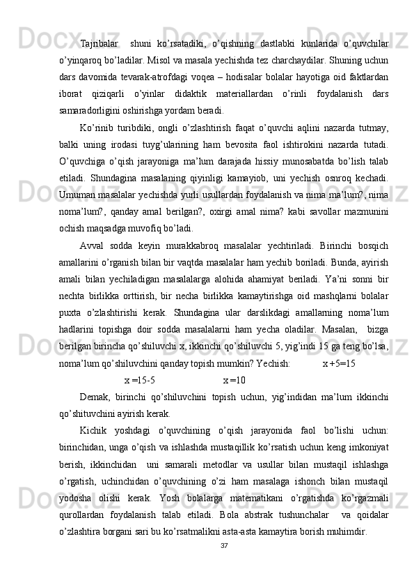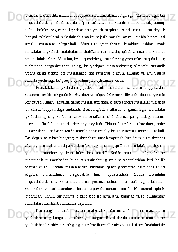 Boshlang’ich sinflarda matematika o’qitishda masalalar yechishning umumiy masalalari