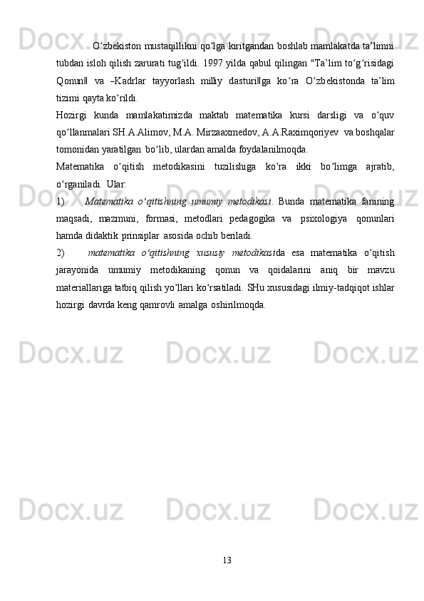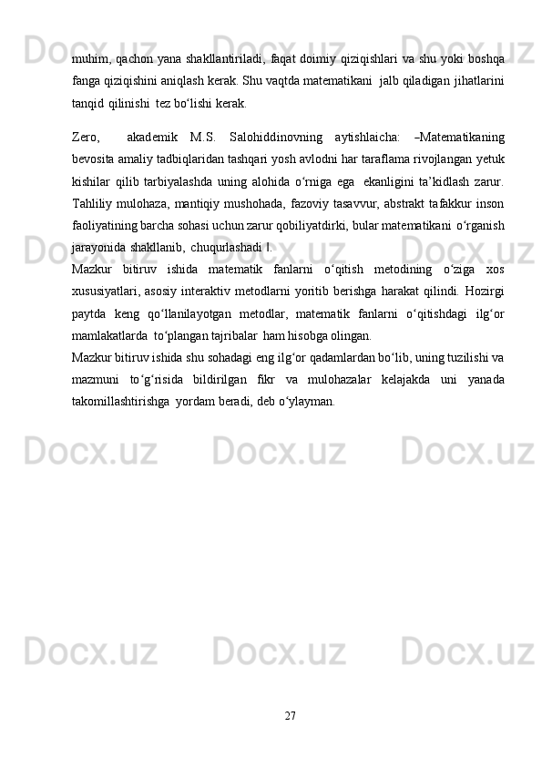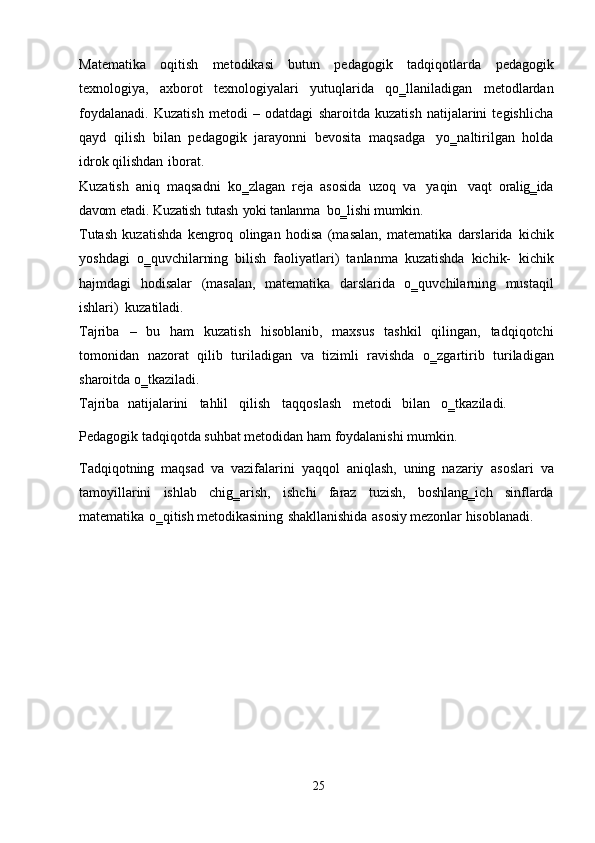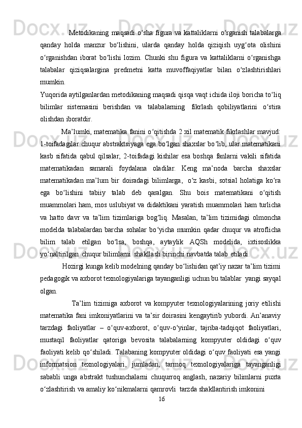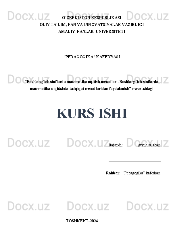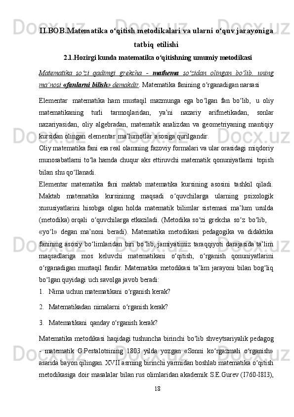 Boshlangʻich sinflarda matematika oqitish metodlari. Boshlangʻich sinflarda matematika oʻqitishda tadqiqot metodlaridan foydalanish