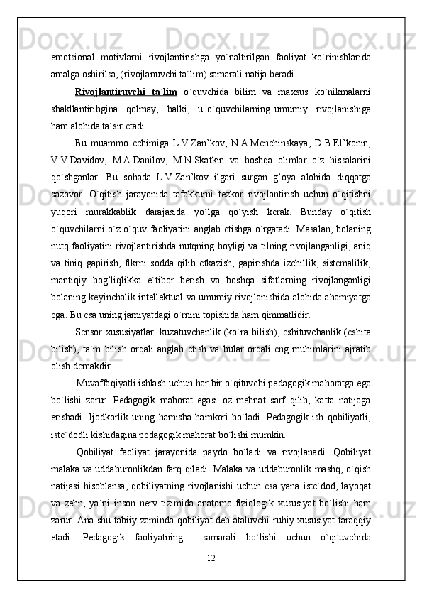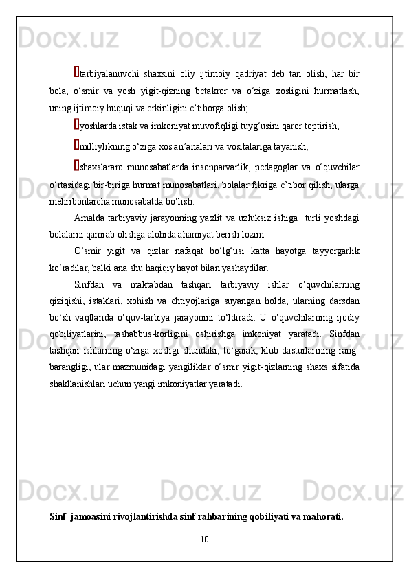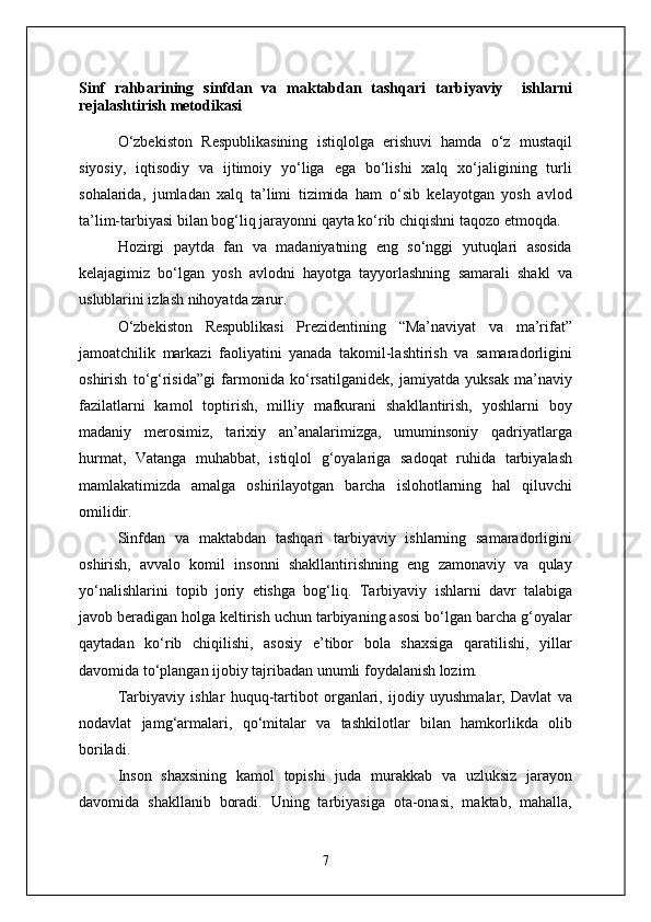 boshlang'ich sinflarda o'quv tarbiyaviy ishlarga rahbarlik qilish