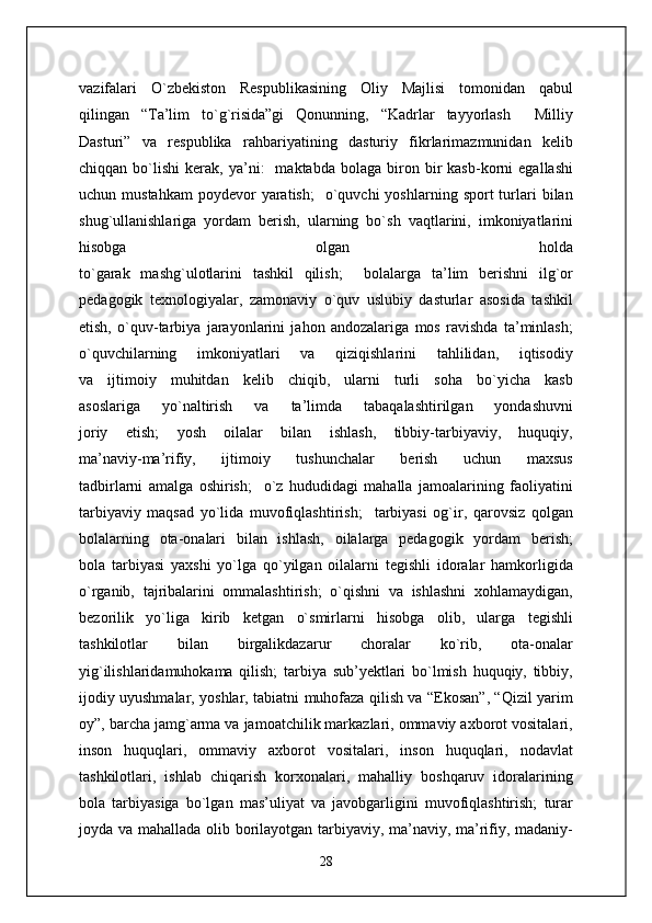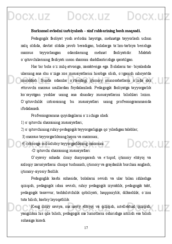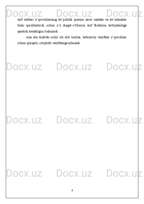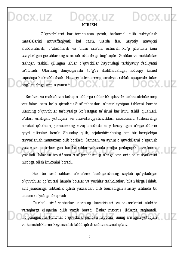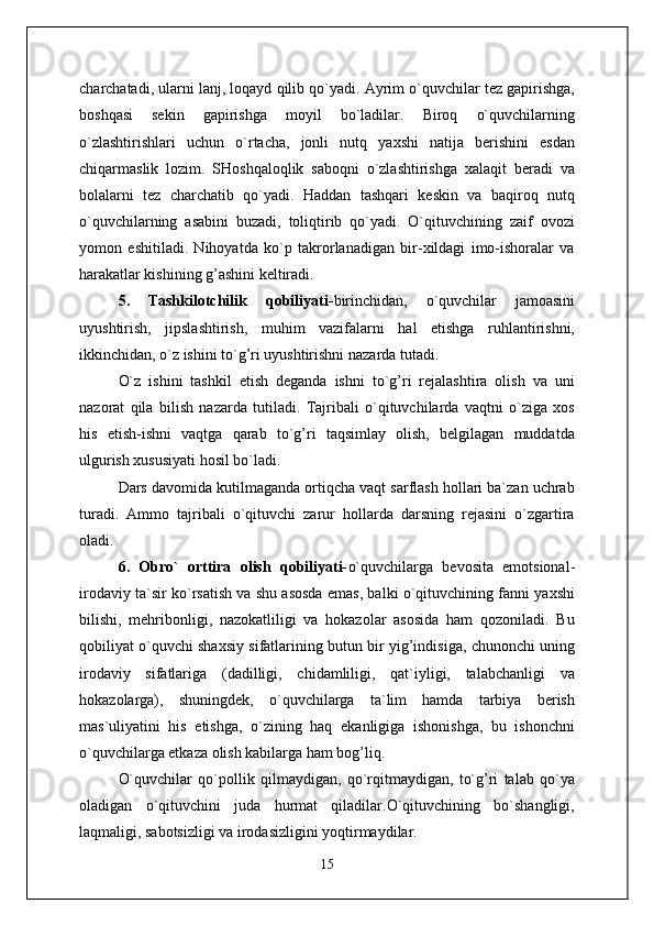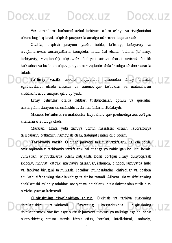 Boshlang'ich sinflarda o'quv tarbiyaviy ishlarga rahbarlik qilish