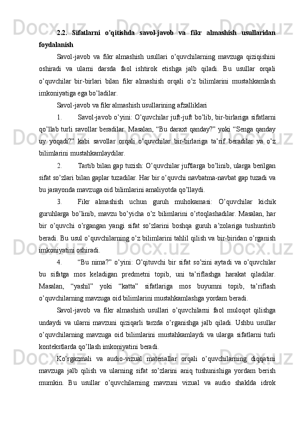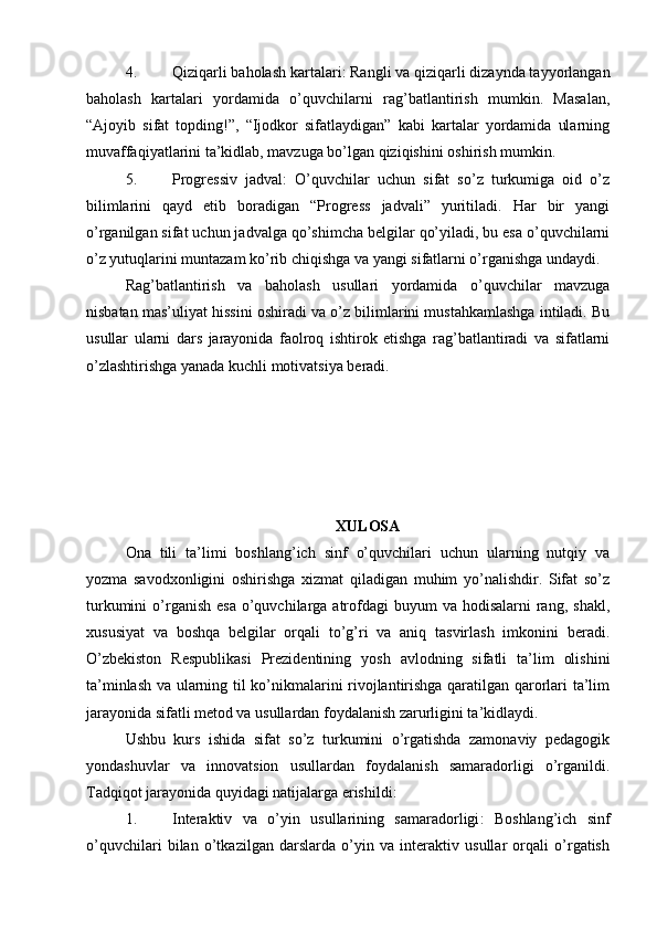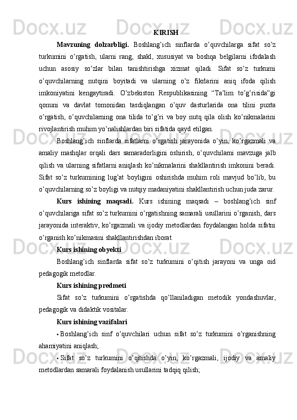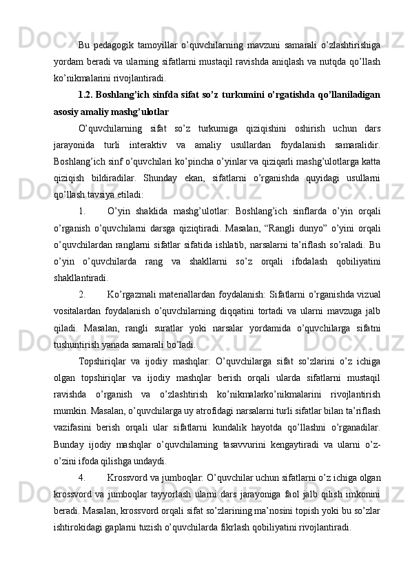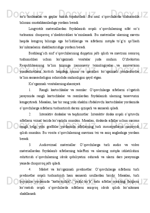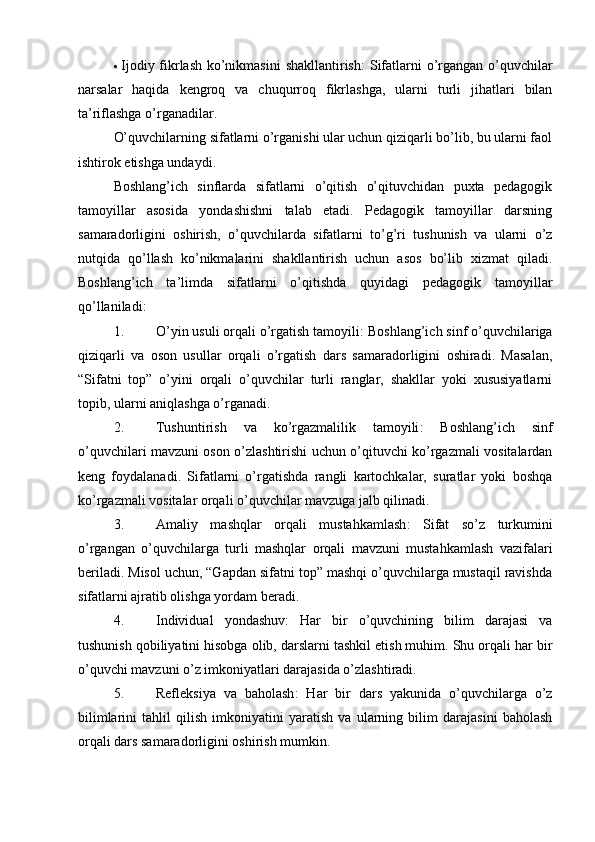 Boshlang’ich sinflarda sifat so’z turkumini o’rganish