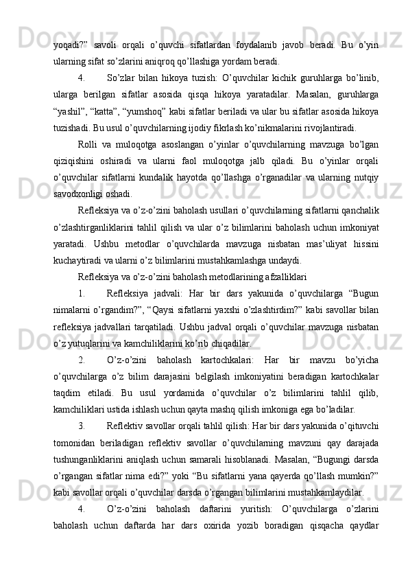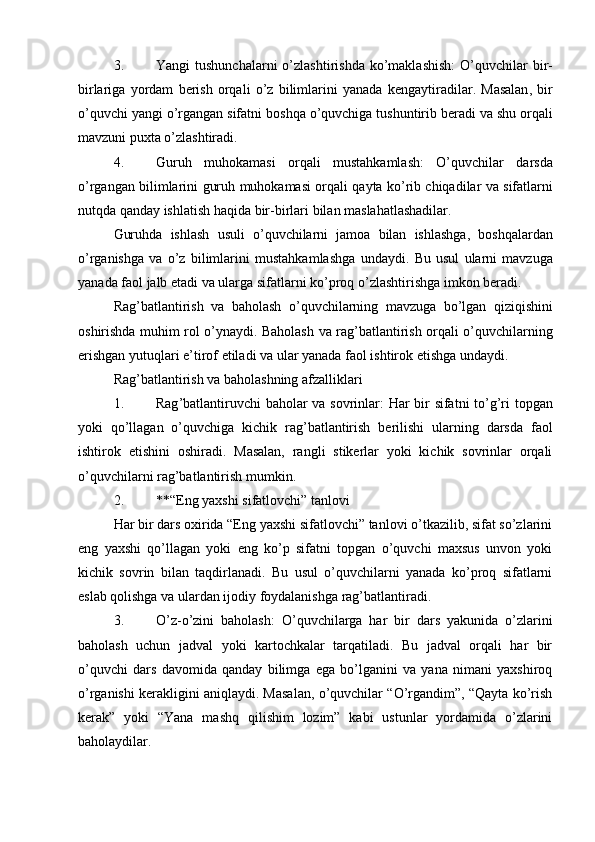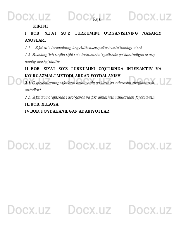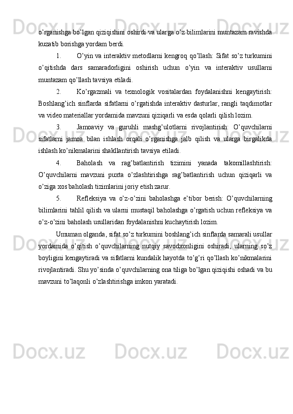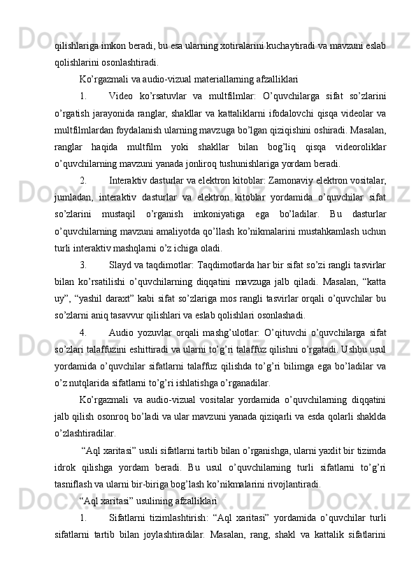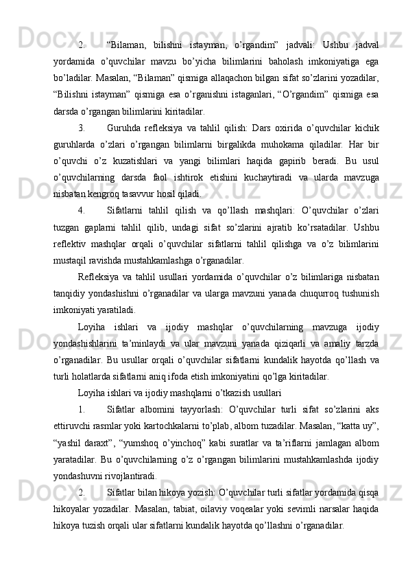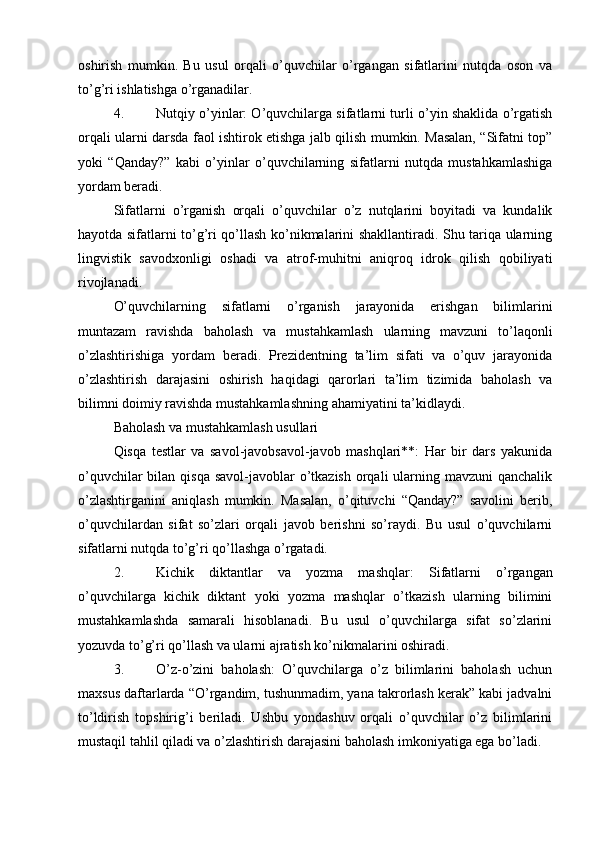 Boshlang’ich sinflarda sifat so’z turkumini o’rganish
