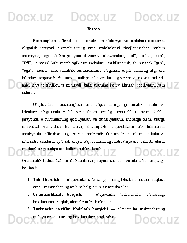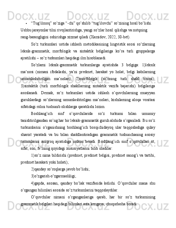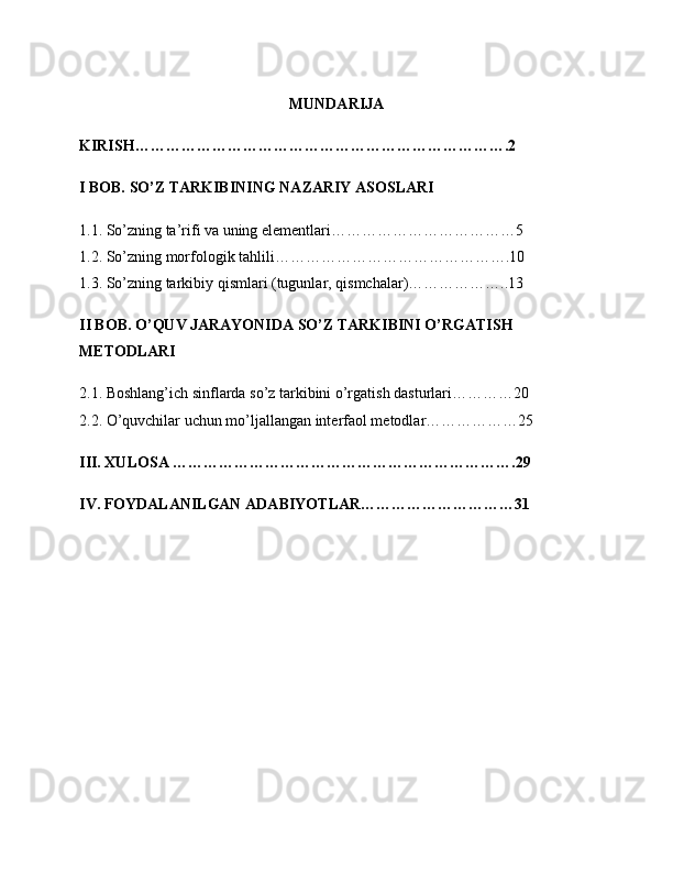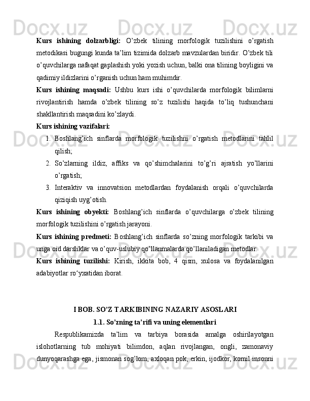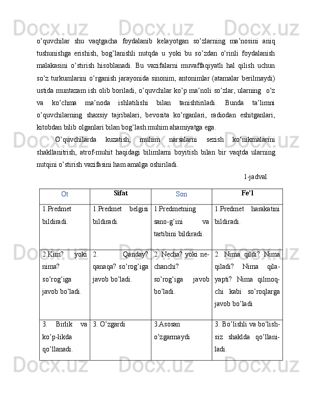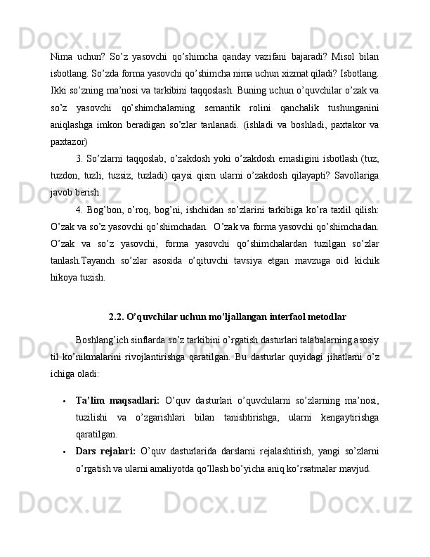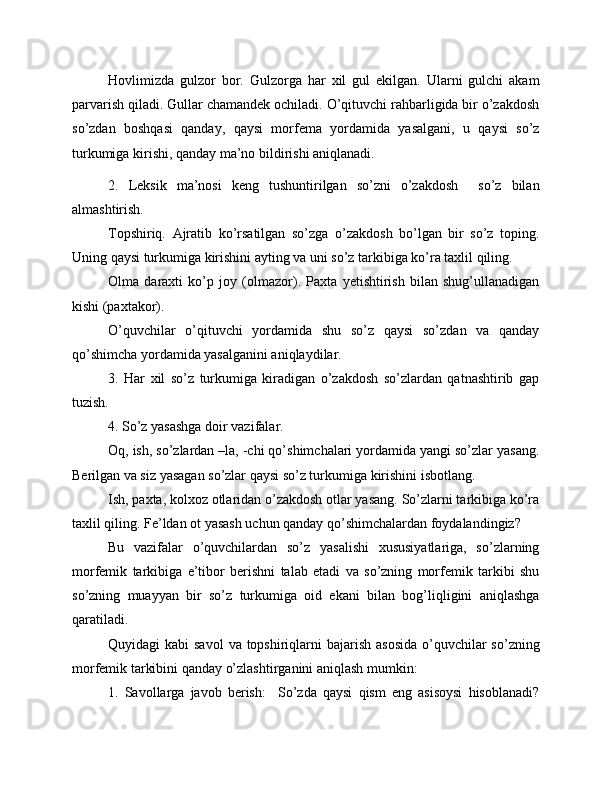 Boshlang’ich sinflarda so’z tarkibi mavzusini o’rgatish metodikasi