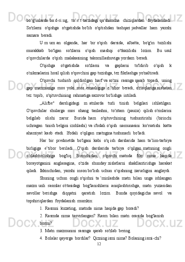 | II-BOB. O’qish savodxonligi darslarida so’z birikmalari ustida ishlash | |
