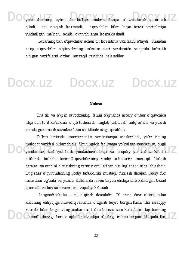 | Xulosa…….………...…………………………………………………………... | 20 |
