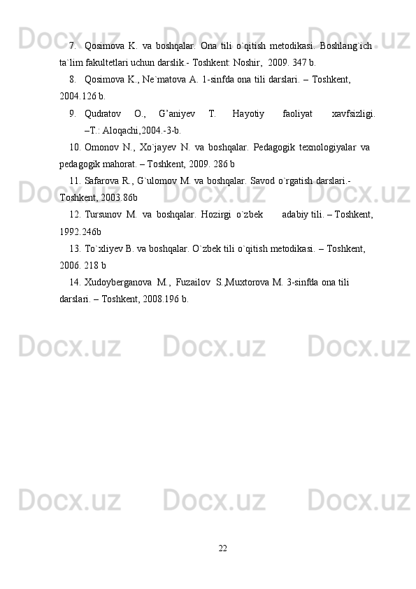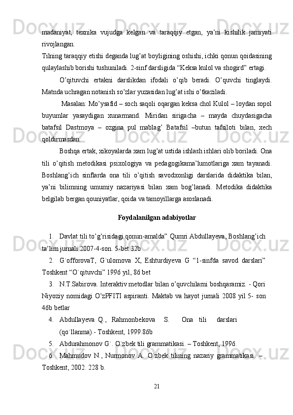 | Foydalanilgan adabiyotlar.................................................................................. | 21 |