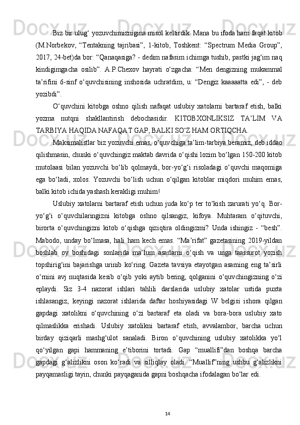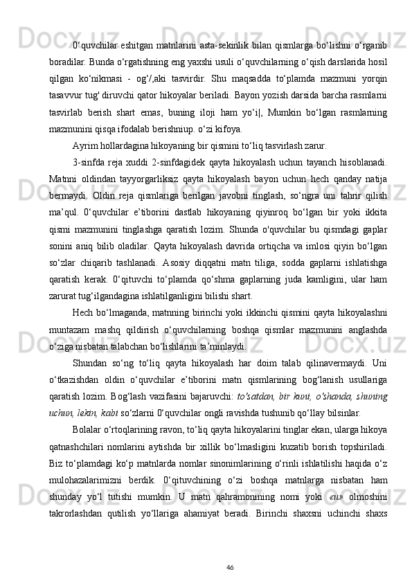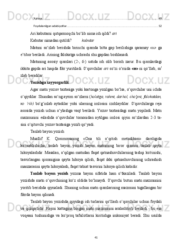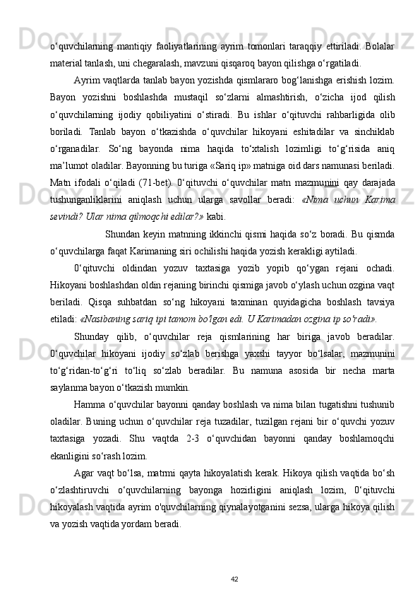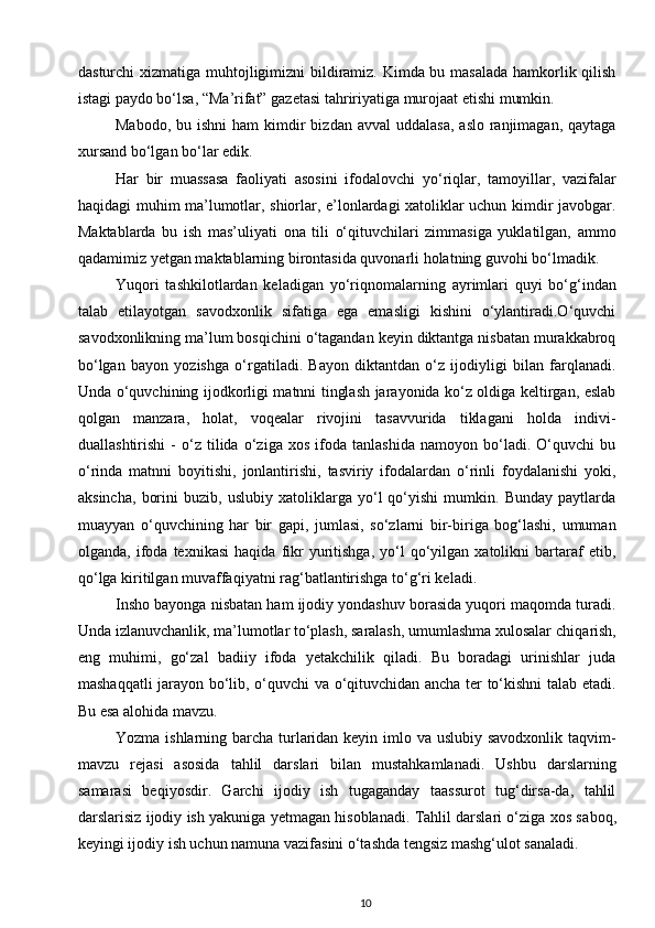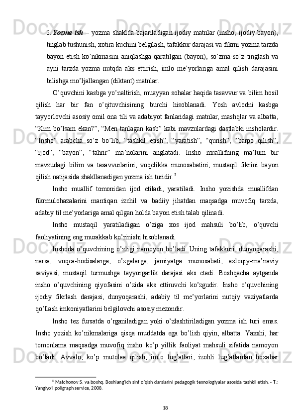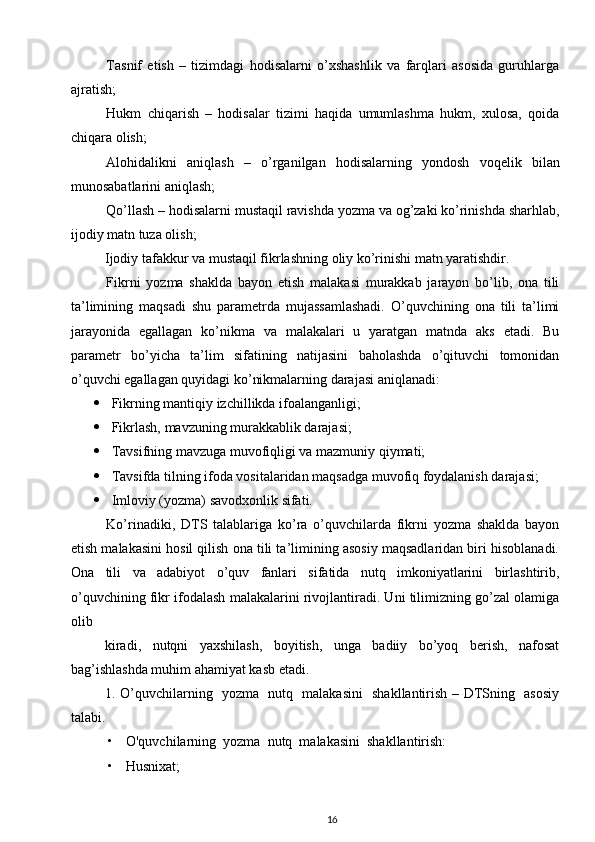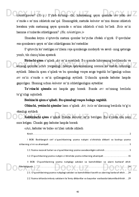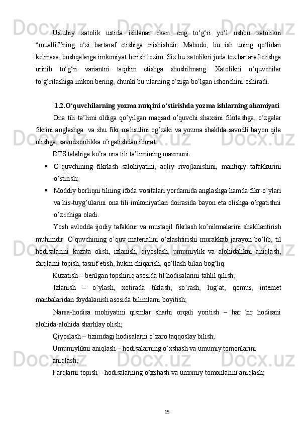 1.2. O‘quvchilarning yozma nutqini o‘stirishda yozma ishlarning ahamiyati 14