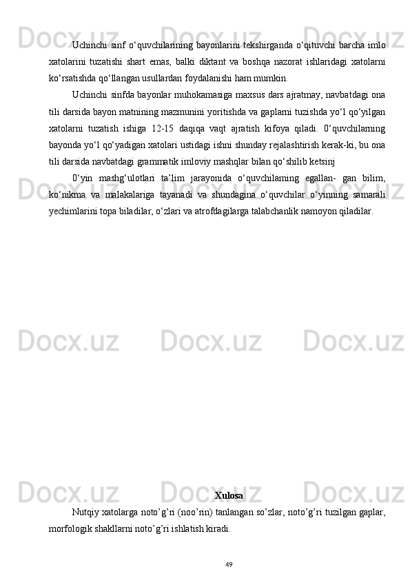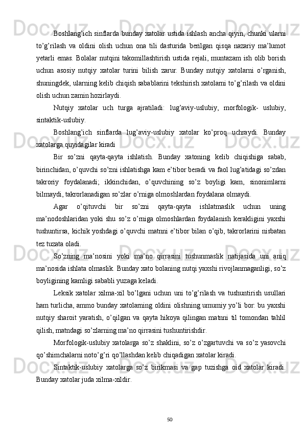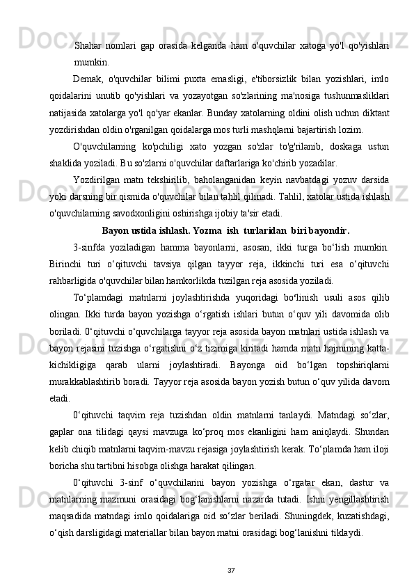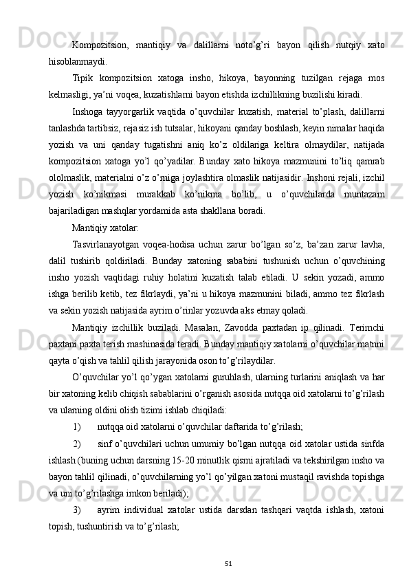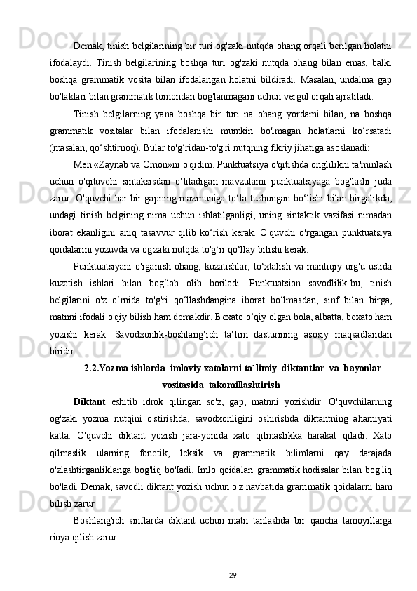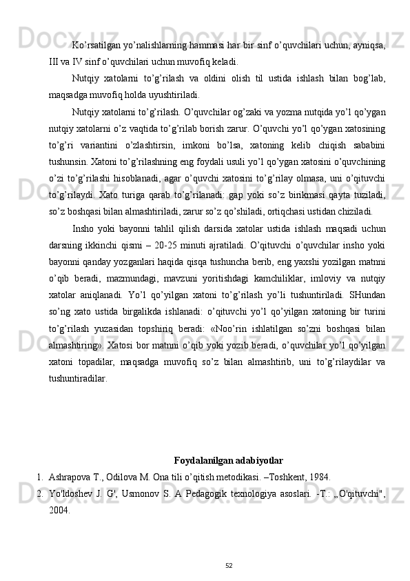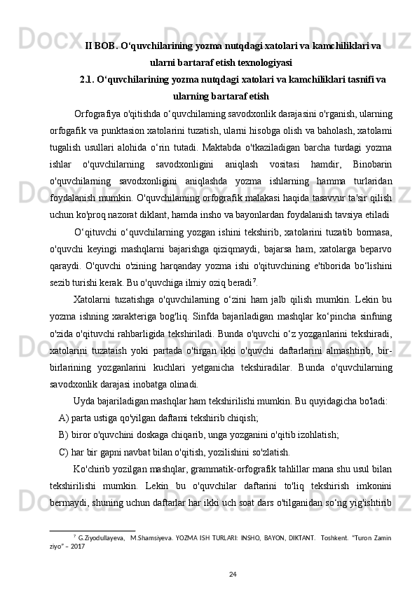 2.1. O‘quvchilarining yozma nutqdagi xatolari va kamchiliklari tasnifi va ularning bartaraf etish 23