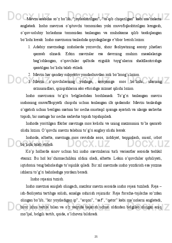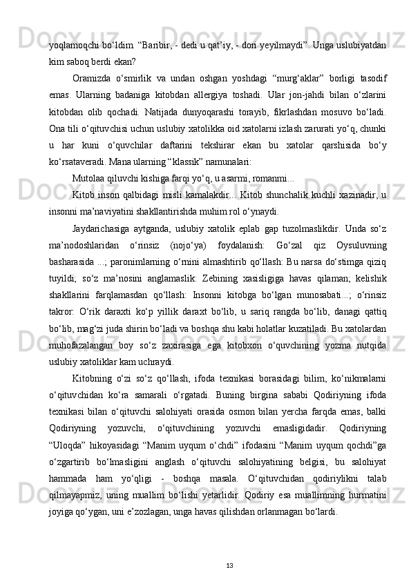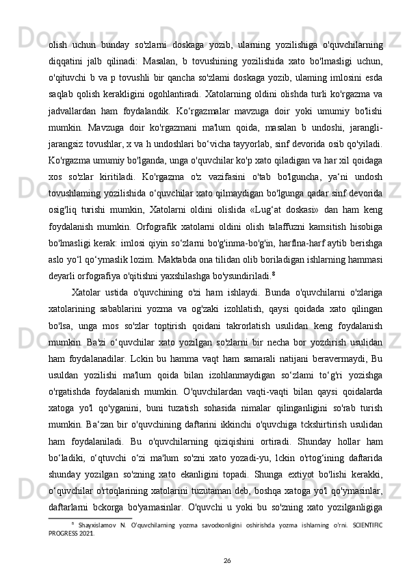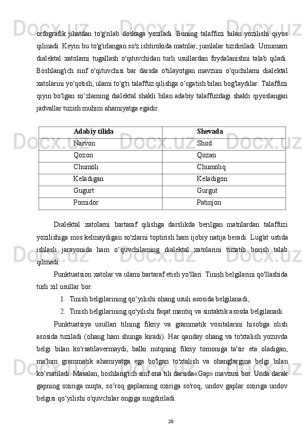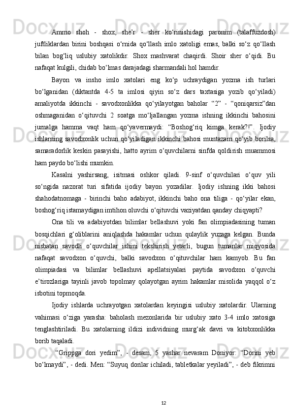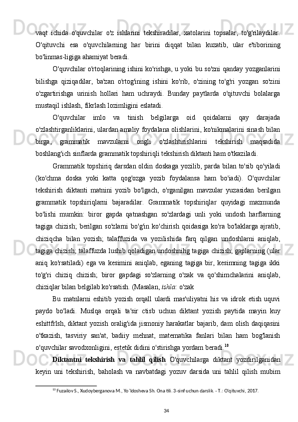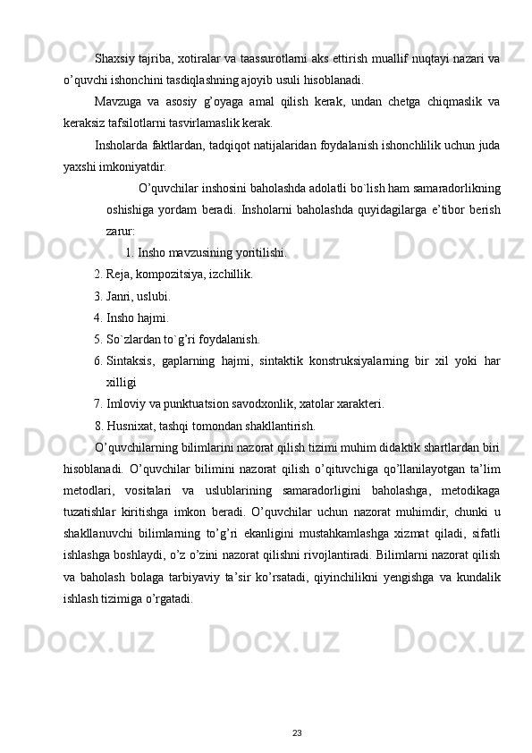 2.1. O‘quvchilarining yozma nutqdagi xatolari va kamchiliklari tasnifi va ularning bartaraf etish 23