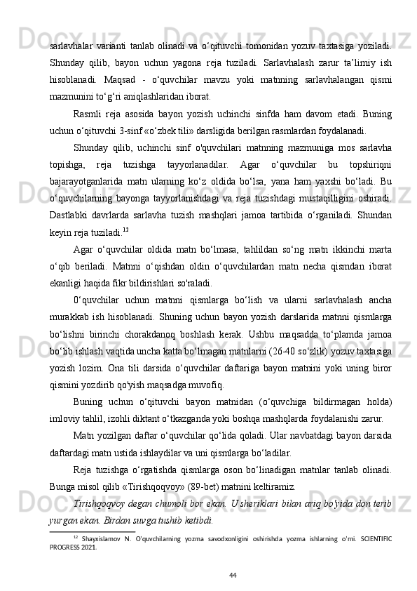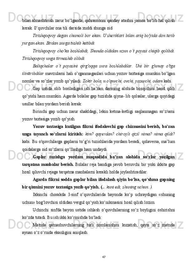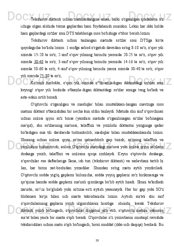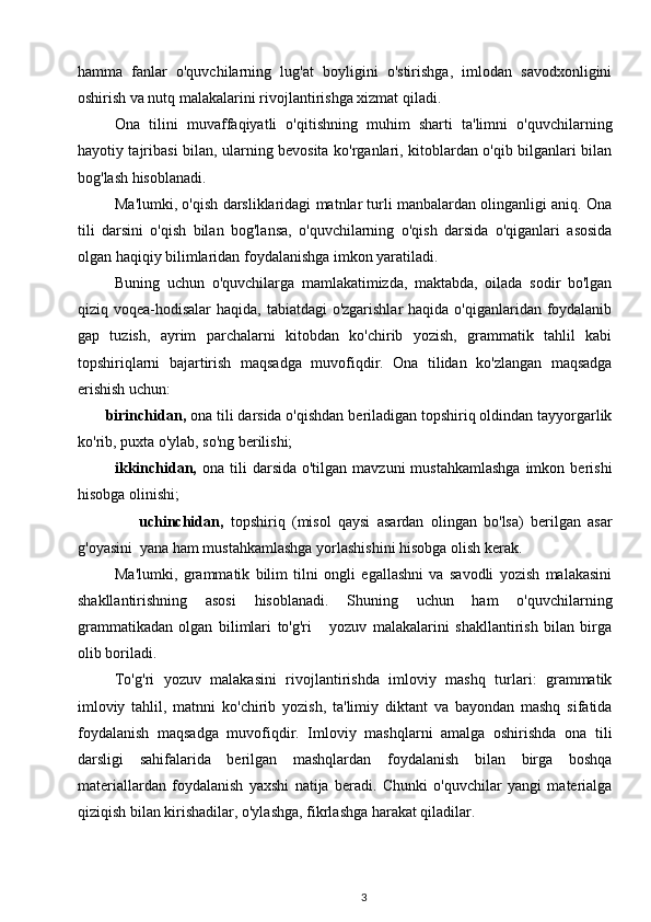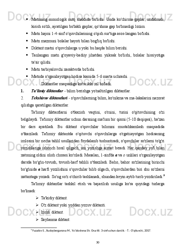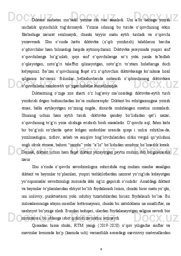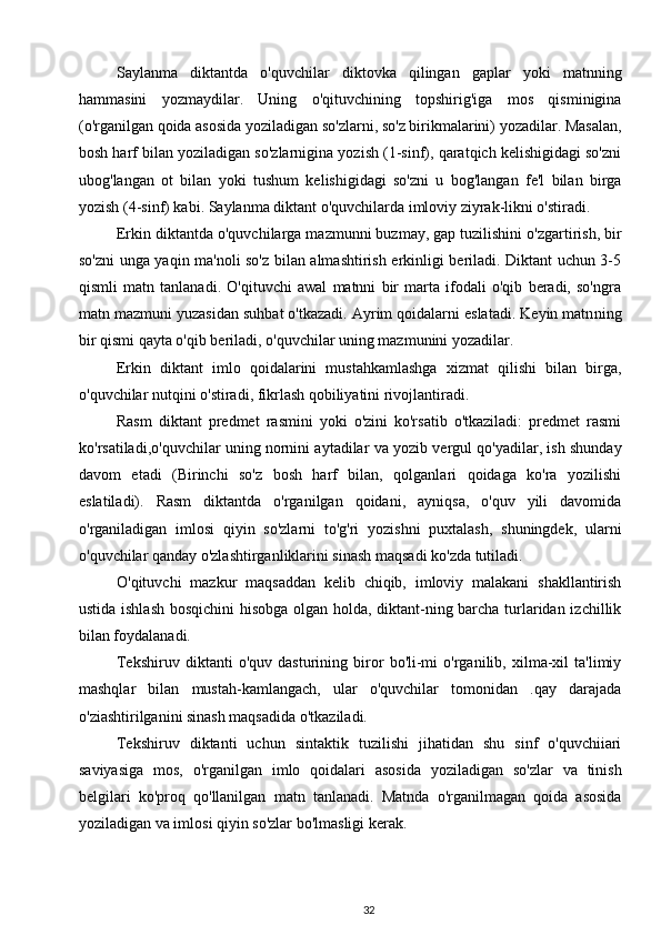 Boshlangich sinf o’quvchilarining yozma nutqini o’stirishda diktant va boshqa yozishmalarning ahamiyati