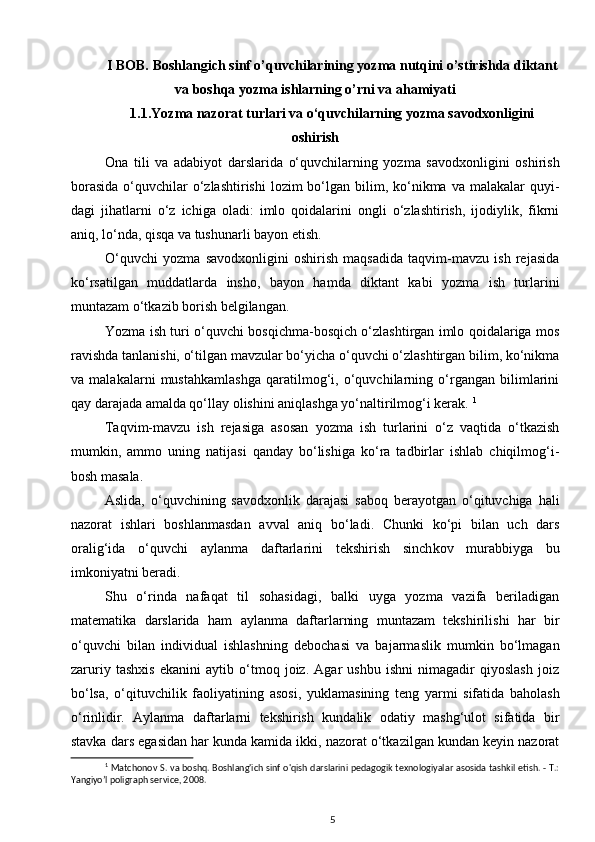 1.1.Yozma nazorat turlari va o‘quvchilarning yozma savodxonligini oshirish. 4