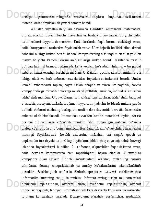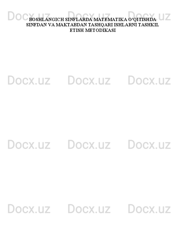 BOSHLANGICH SINFLARDA MATEMATIKA O'QITISHDA SINFDAN VA MAKTABDAN TASHQARI ISHLARNI TASHKIL ETISH METODIKASI