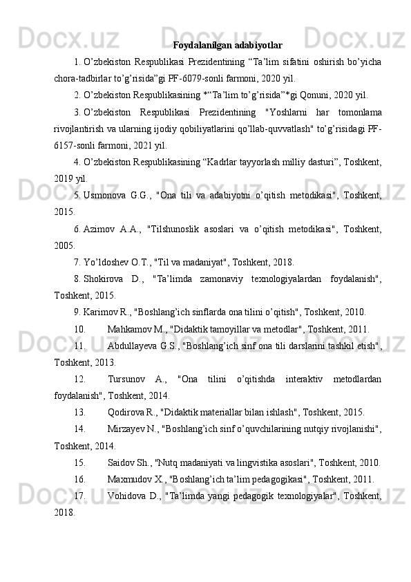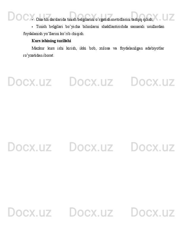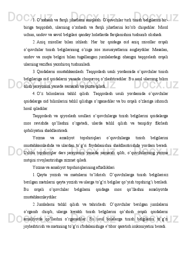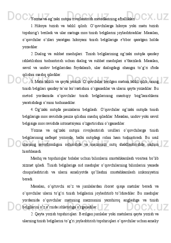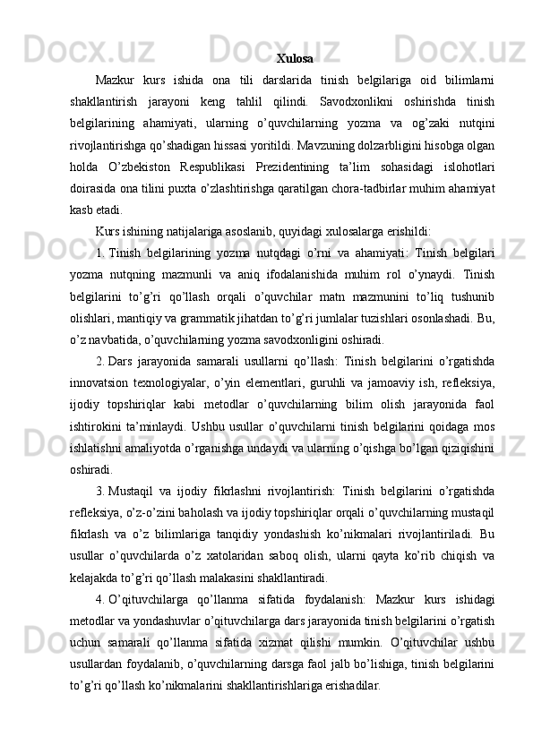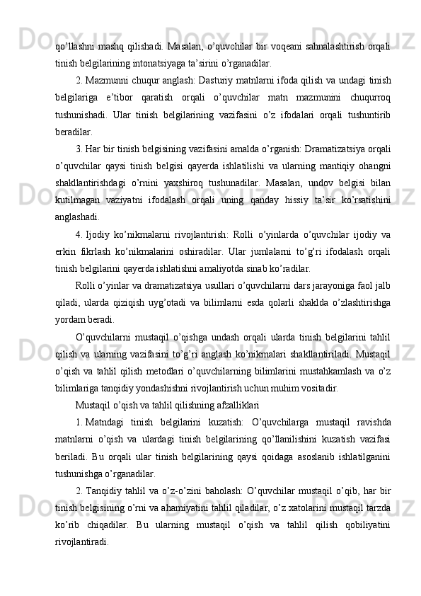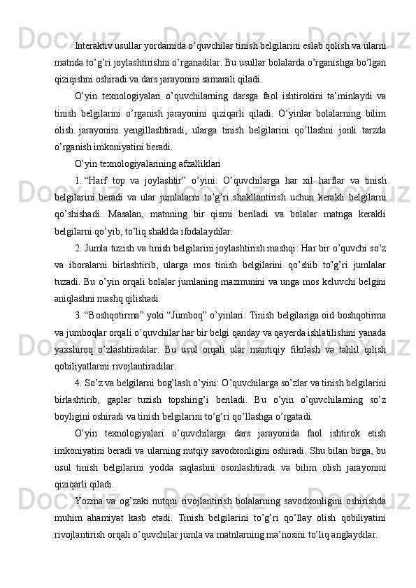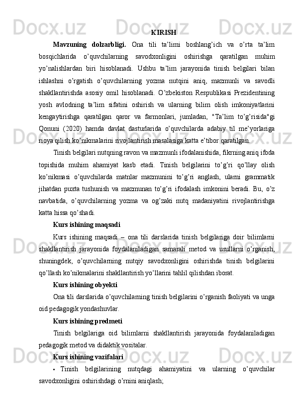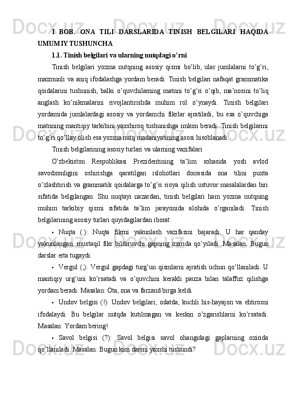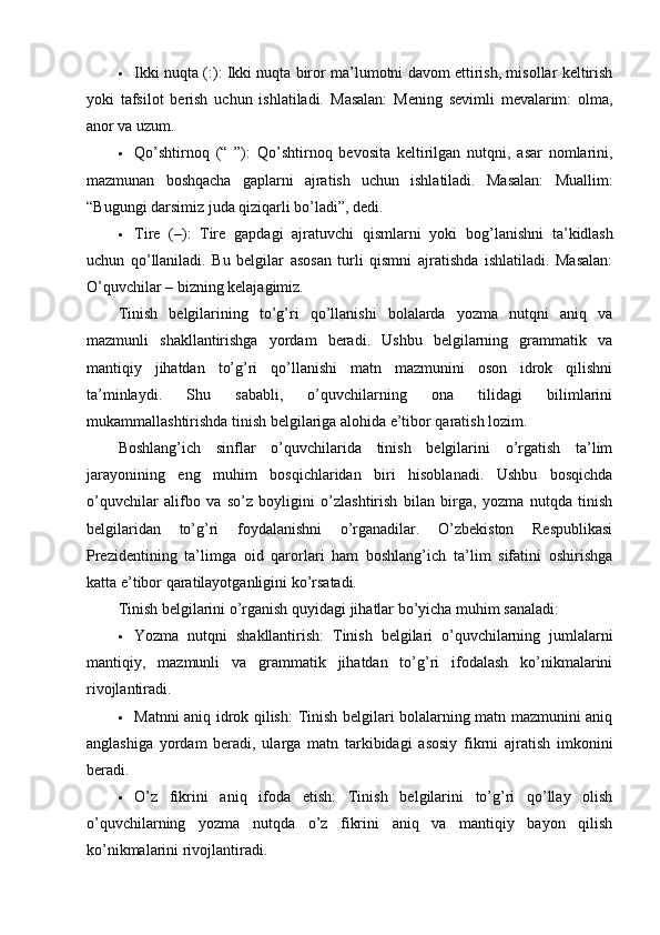 Boshlangich sinflarda tinish belgilarini o’rgatish metodikasi