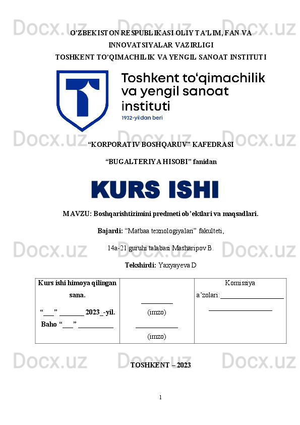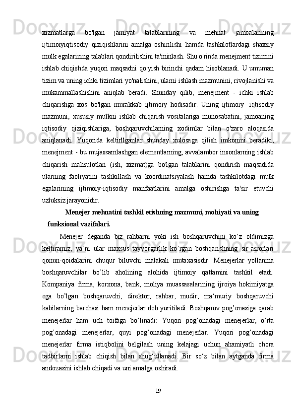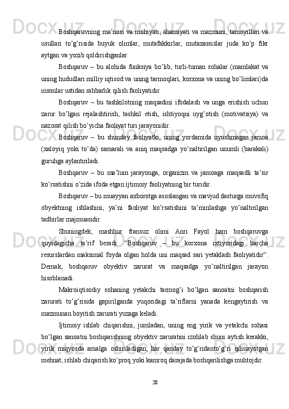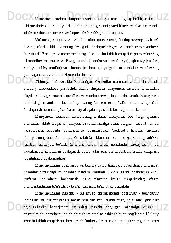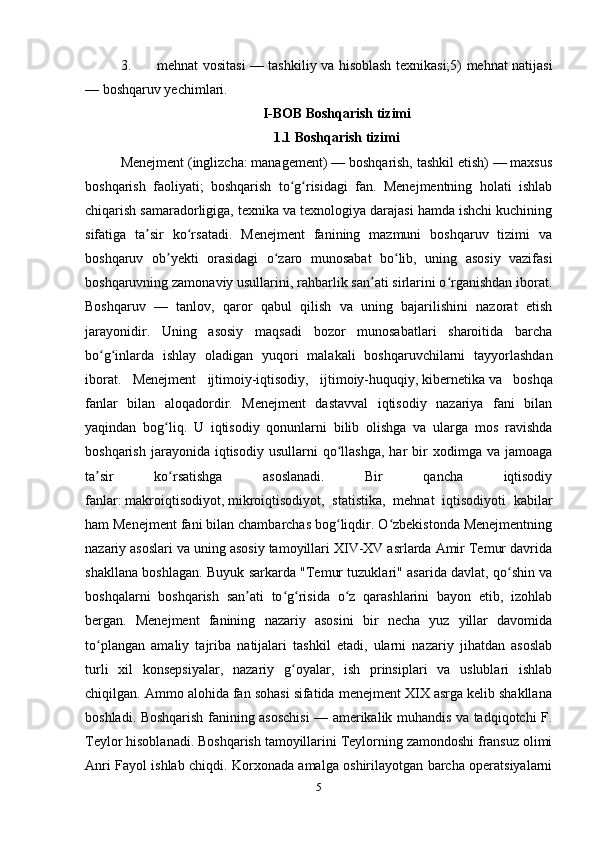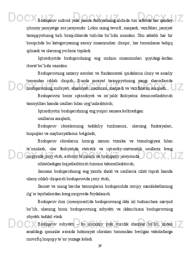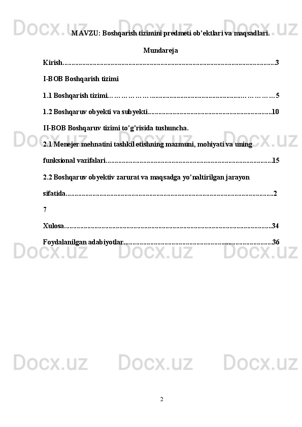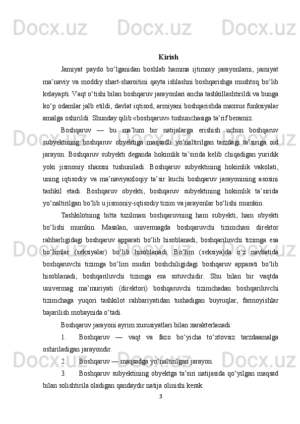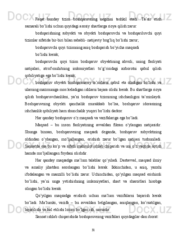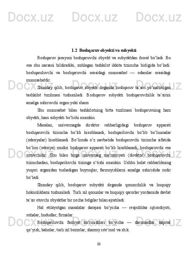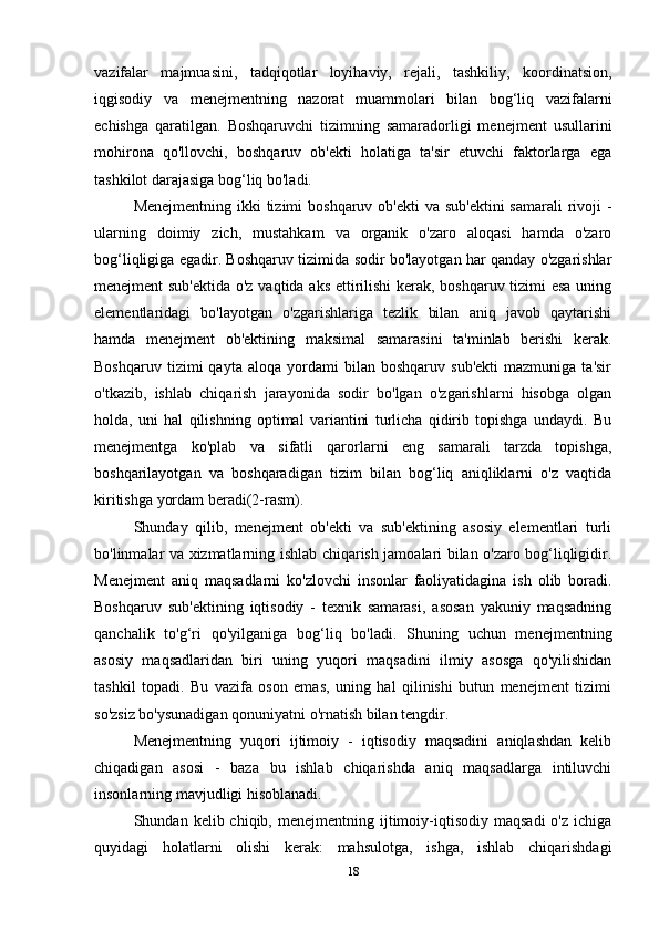 Boshqarish tizimini predmeti ob’ektlari va maqsadlari