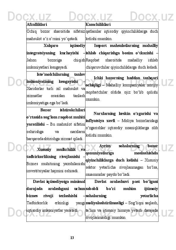 2.1. Bozor iqtisodiyoti rivojlanishining huquqiy va institutsional asoslari….20