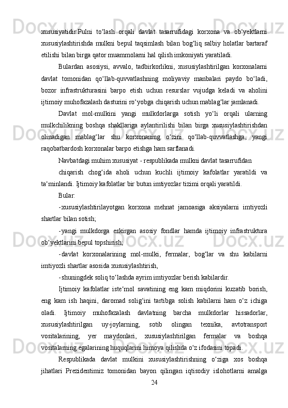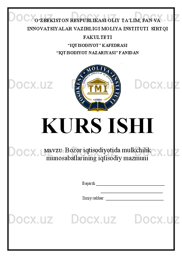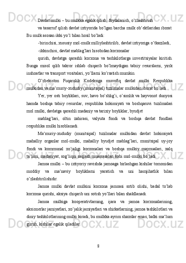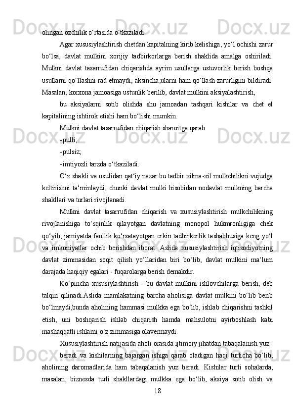 Bozor iqtisodiyotida mulkchilik munosabatlarining iqtisodiy mazmuni