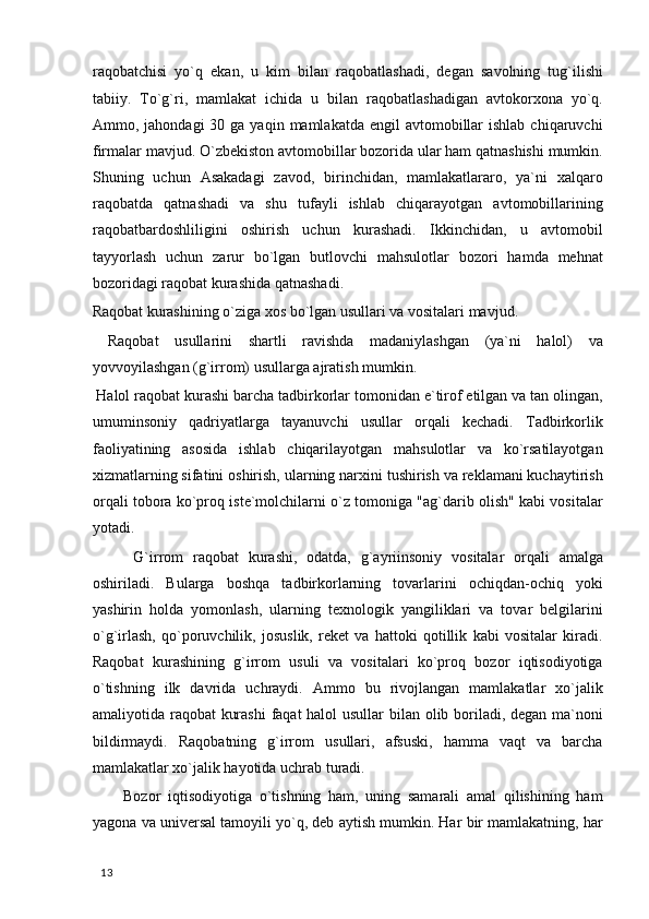 o`rtasida katta bir umumiylik bor. Bu umumiylik ularning bozor tizimi bo`la turib,