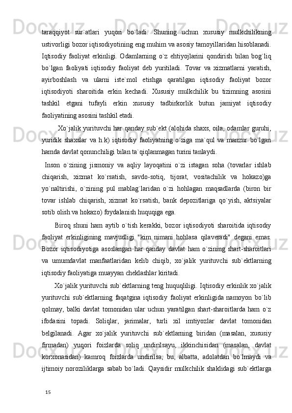 14   taraqqiyot   sur`atlari   yuqori   bo`ladi.   Shuning   uchun   xususiy   mulkchilikning