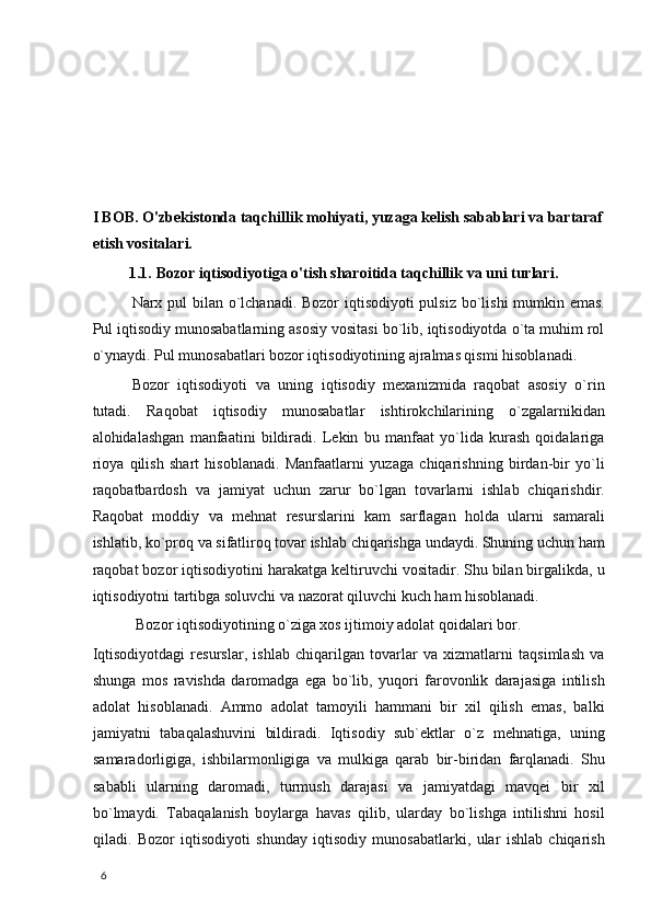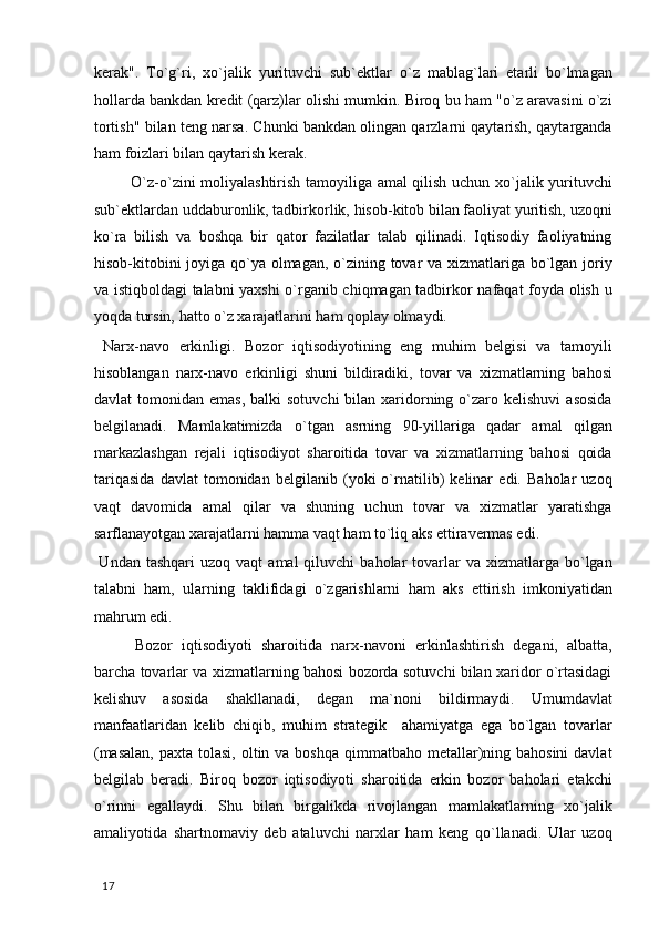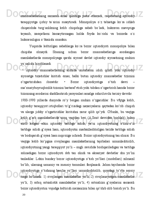 bo`lishi tabiiy. Shu bilan birga bozor iqtisodiyotini tizim sifatida belgilab beruvchi
