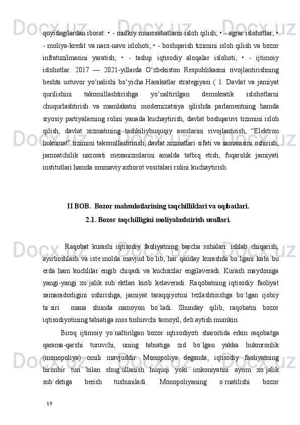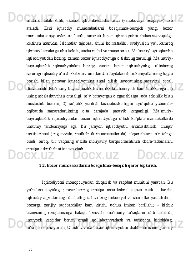 munosabatlariga   aylantira   borib,   samarali   bozor   iqtisodiyotini   shikastsiz   vujudga