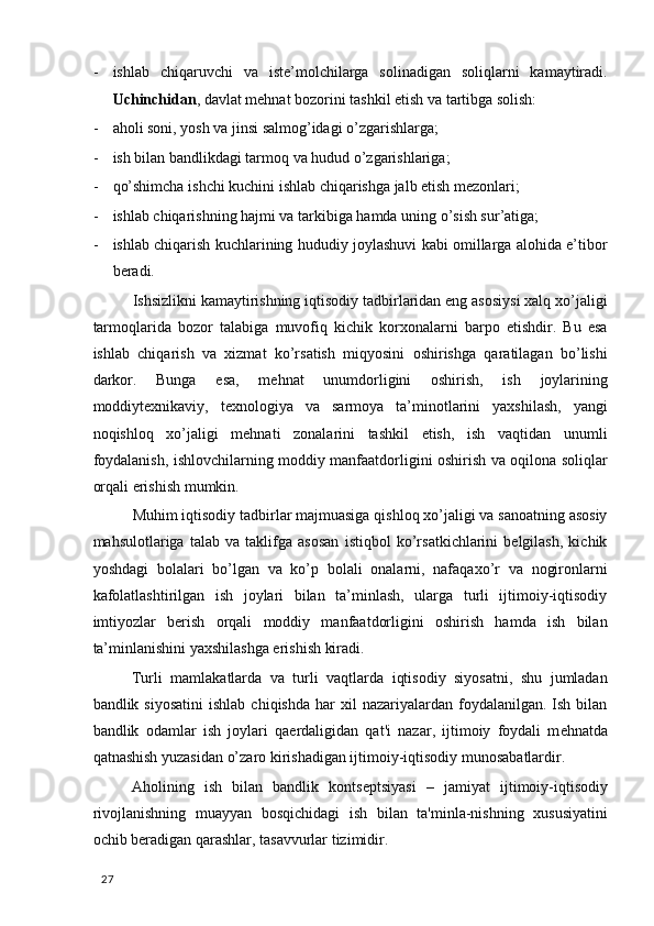 qolmay,   balki   davlat   tomonidan   ular   uchun   yaratilgan   shart-sharoitlarda   ham   o`z
