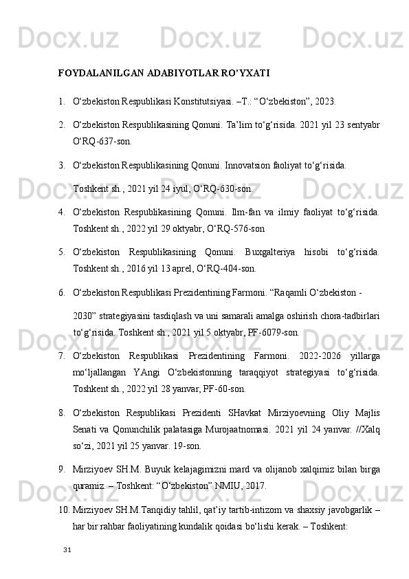 5   O’ZBEKISTON RESPUBLIKASI OLIY TA’LIM, FAN VA