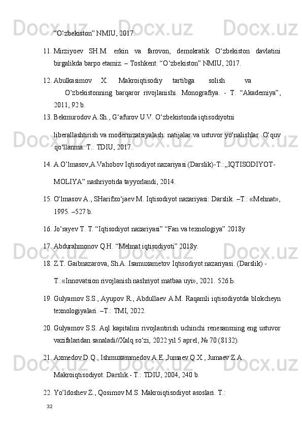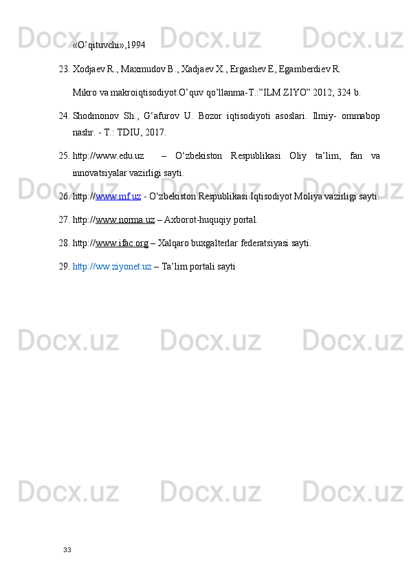 ,,IQTISODIYOT NAZARIYASI” fanidan
