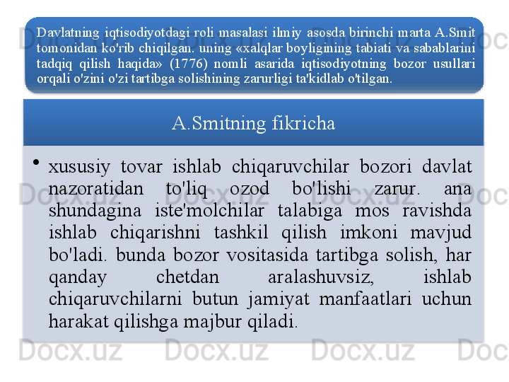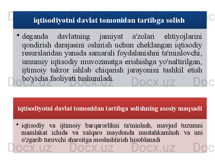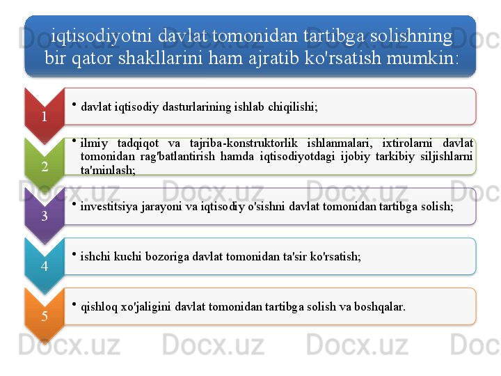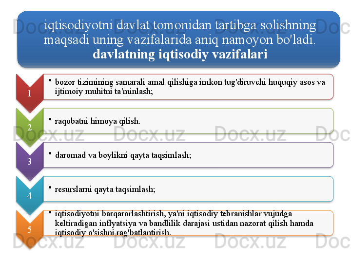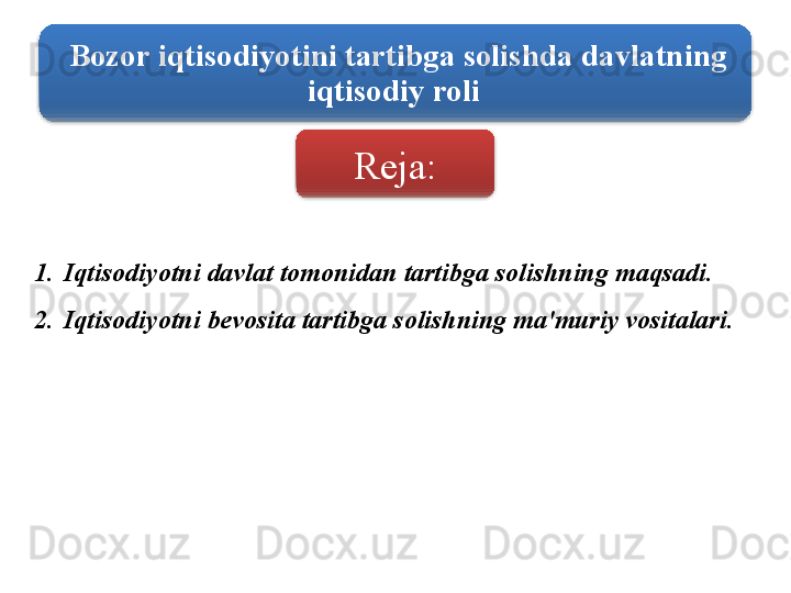 Bozor iqtisodiyotini tartibga solishda davlatning iqtisodiy roli