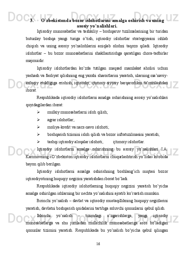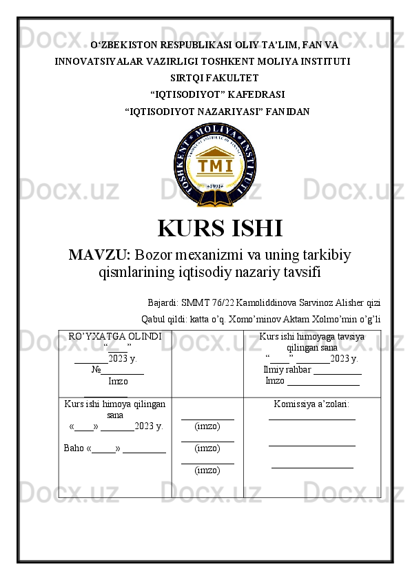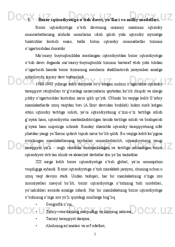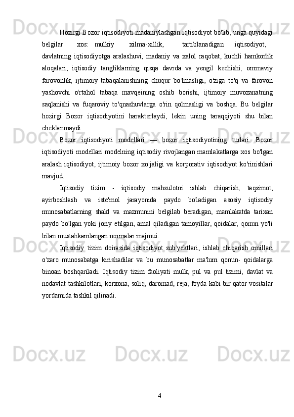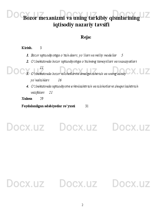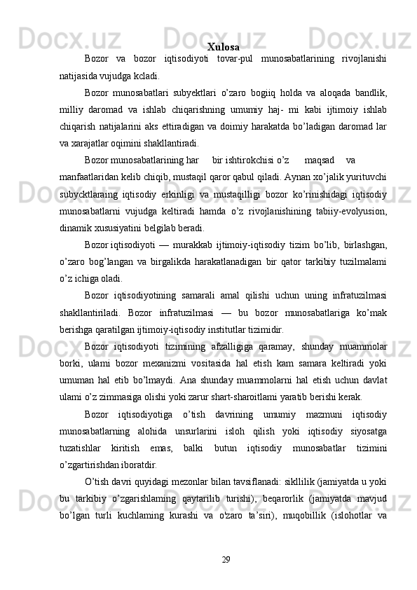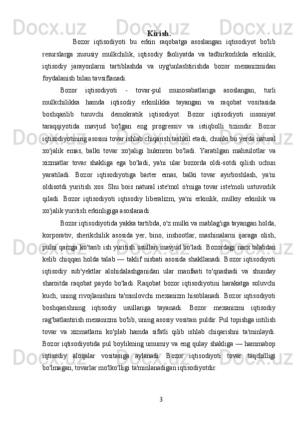 Bozor mexanizmi va uning tarkibiy qismlarining iqtisodiy nazariy tavsifi
