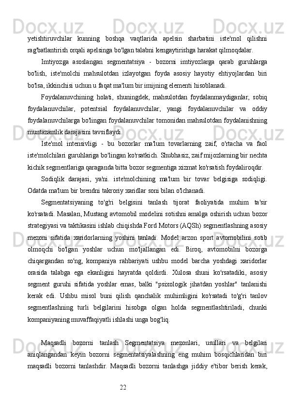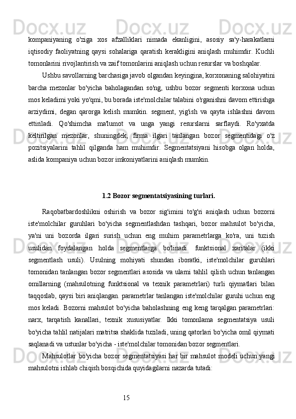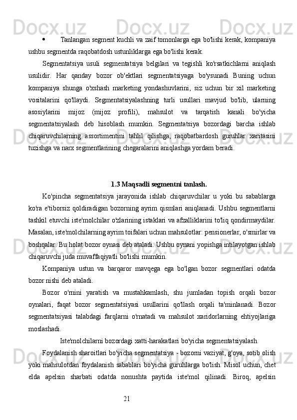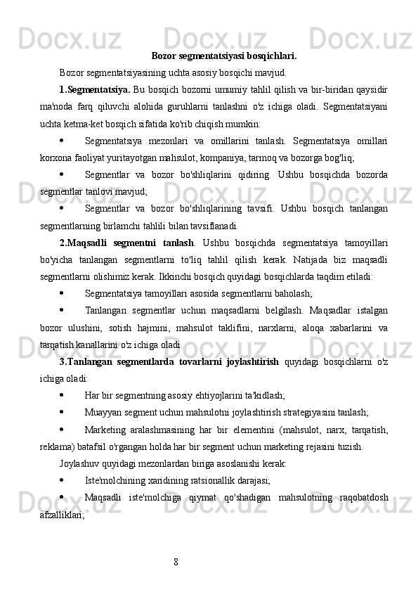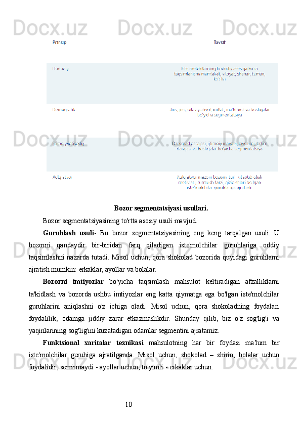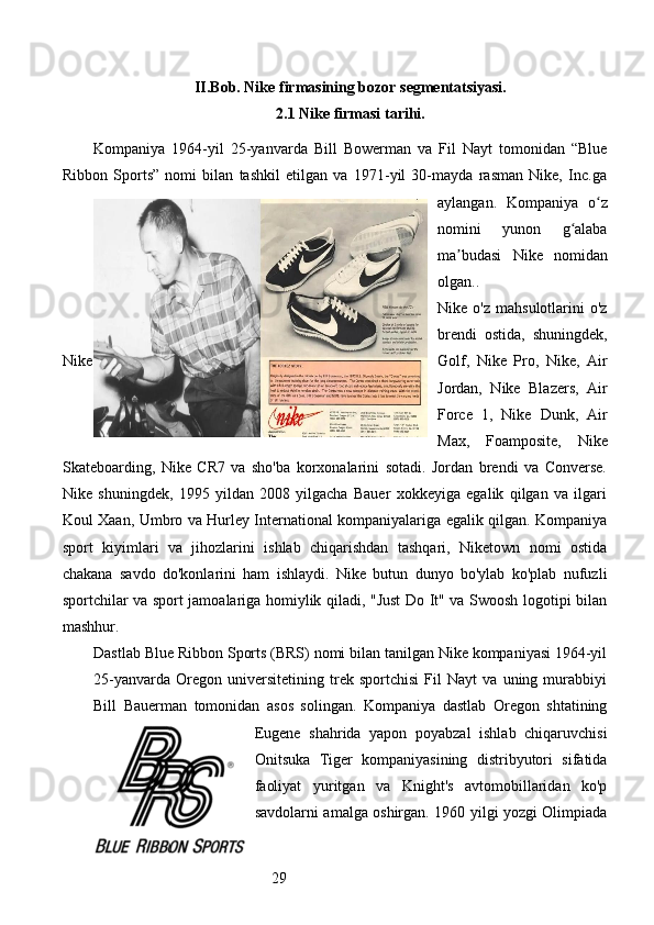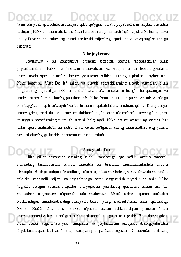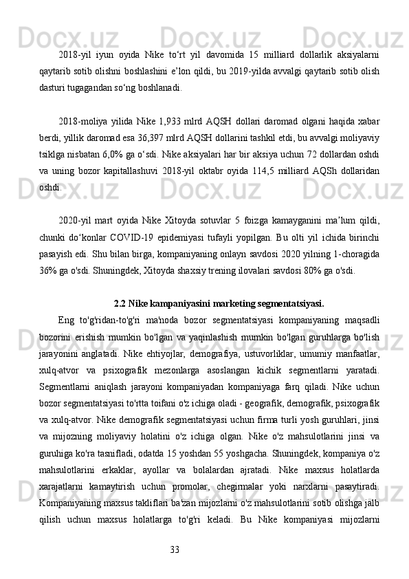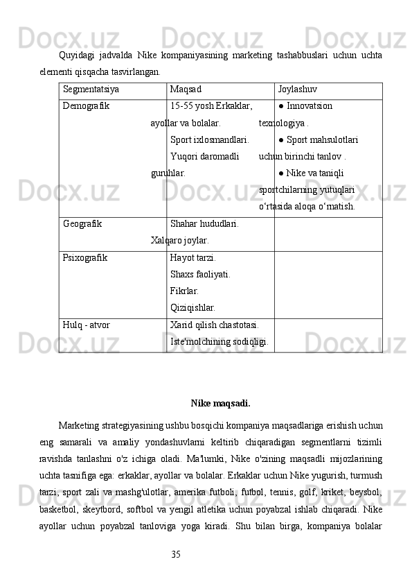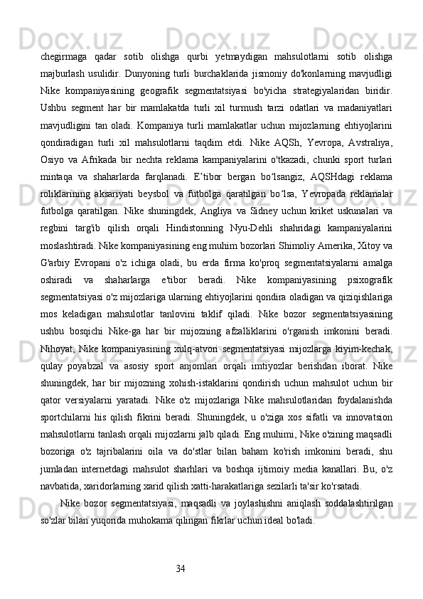 Bozor segmentatsiyasini asosiy bosqichlari, tamoyillari va usullari. Nike firmasining bozor segmentatsiyasi