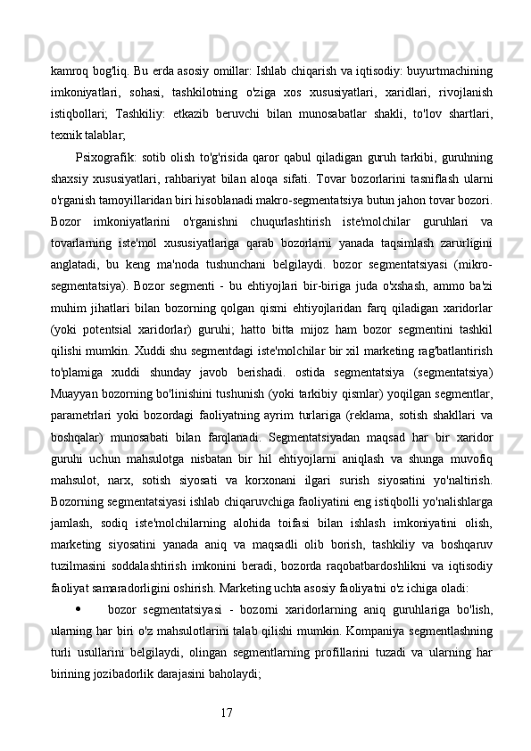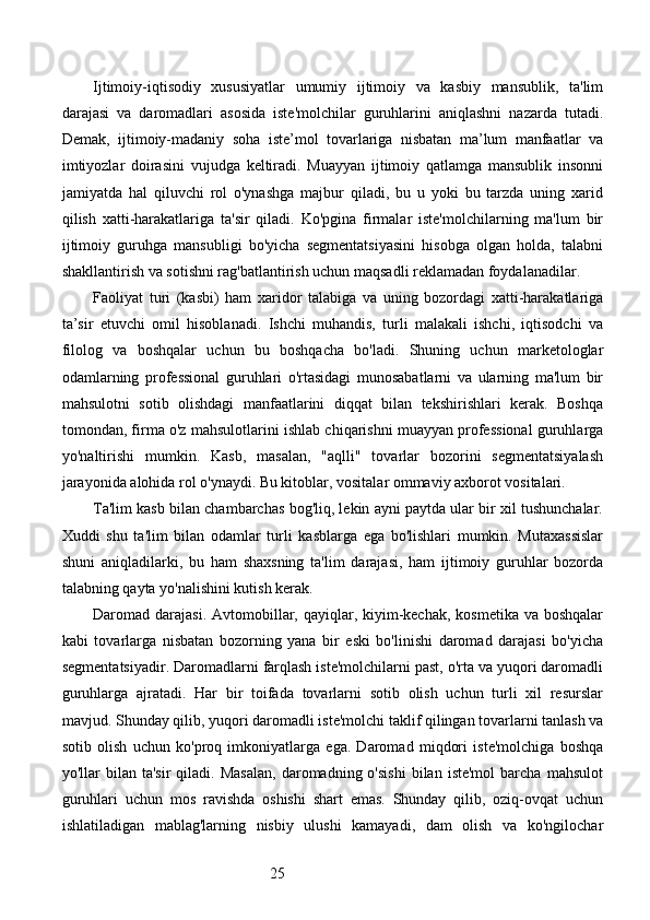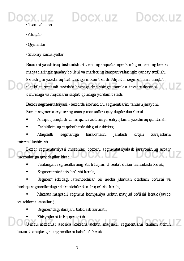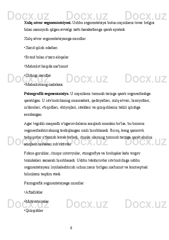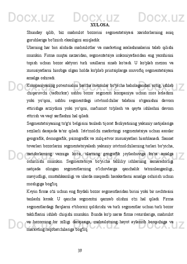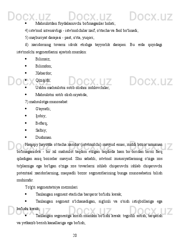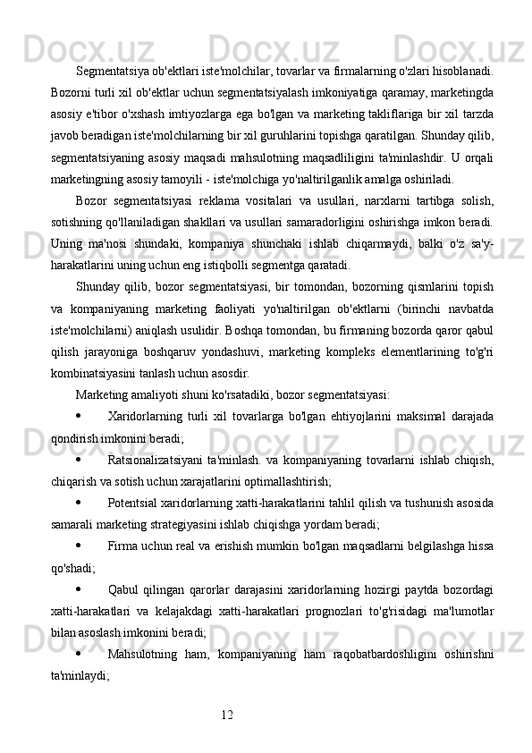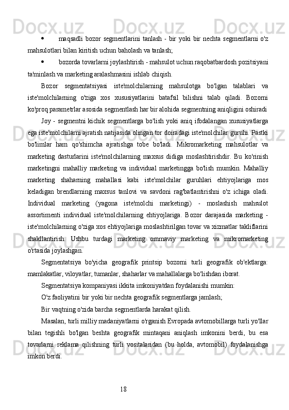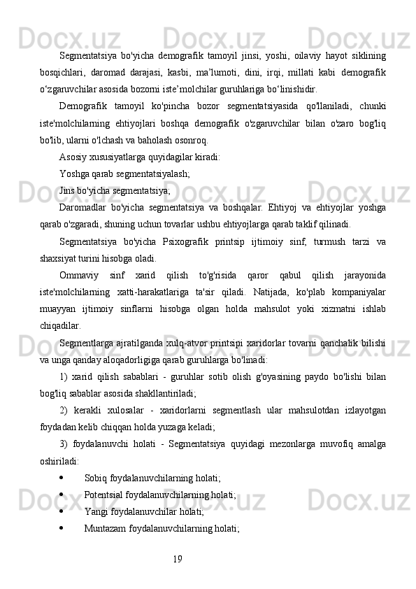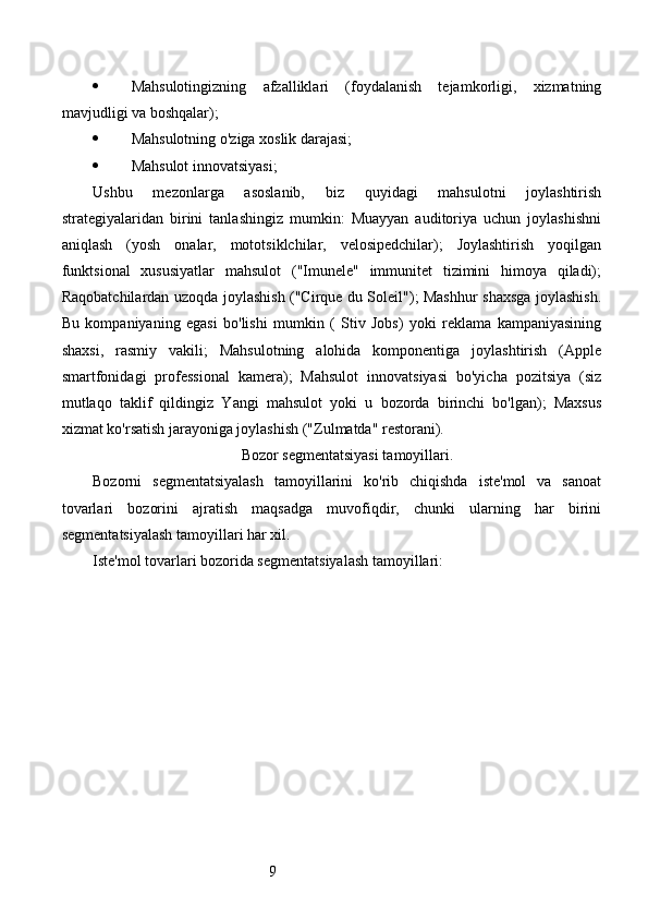 Bozor segmentatsiyasini asosiy bosqichlari, tamoyillari va usullari. Nike firmasining bozor segmentatsiyasi