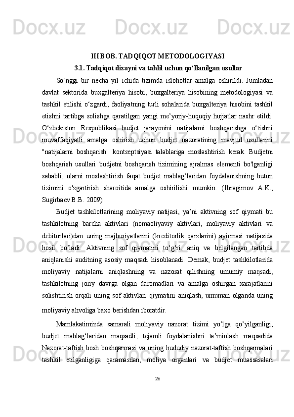 | III BOB. | TADQIQOT METODOLOGIYASI.................................................. | 27 | |