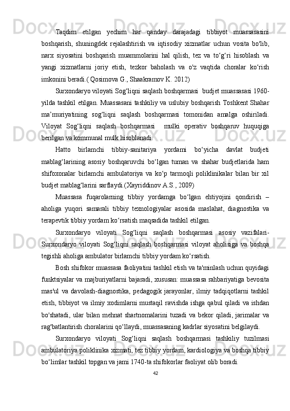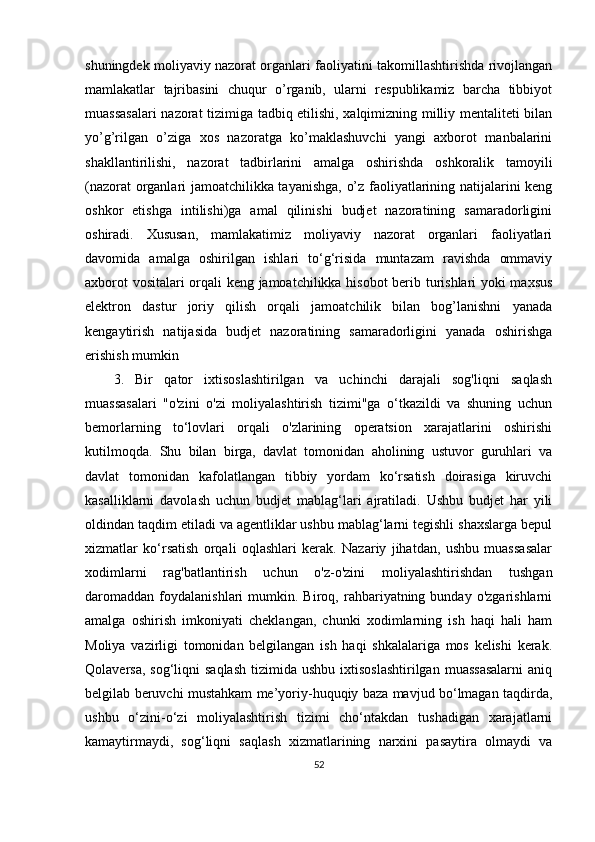 | V BOB. | XULOSA VA TAKLIFLAR............................................................... | 52 | |