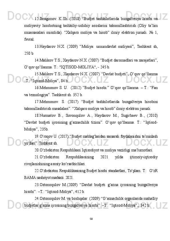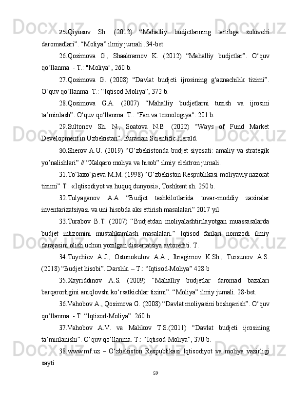| FOYDALANILGAN ADABIYOTLAR RO‘YXATI.......................................... | 59 | ||