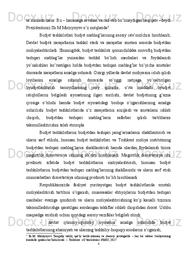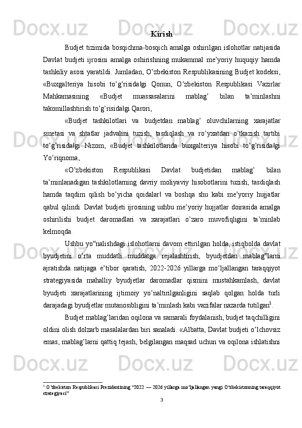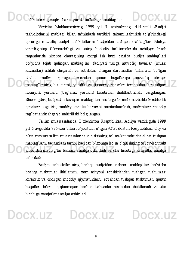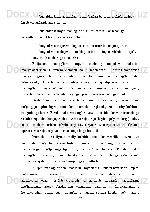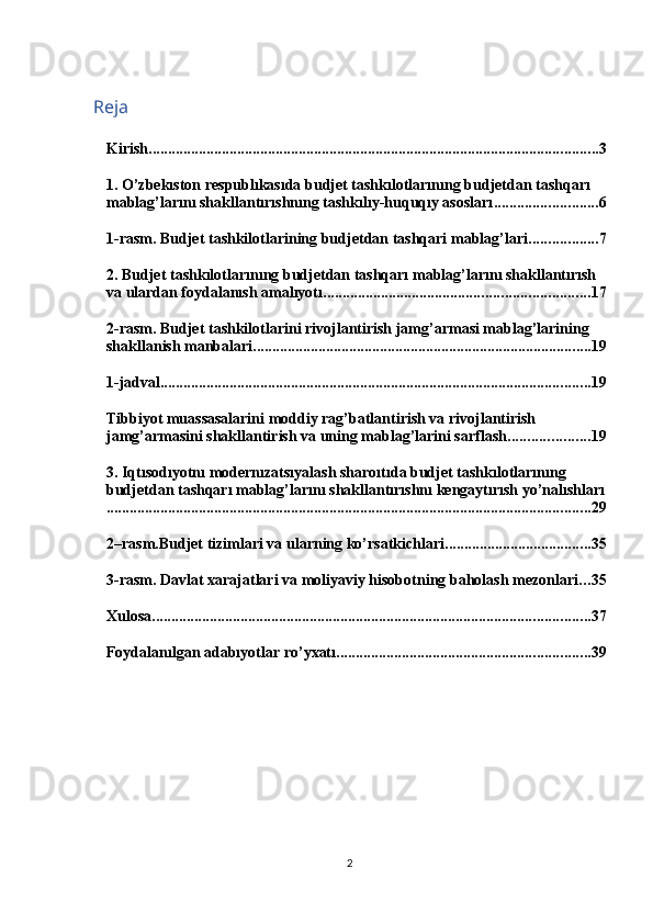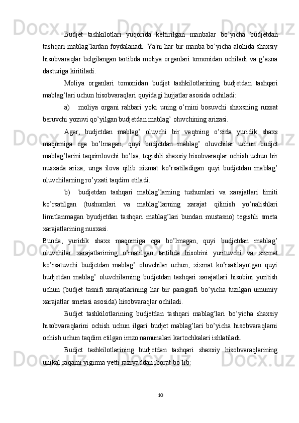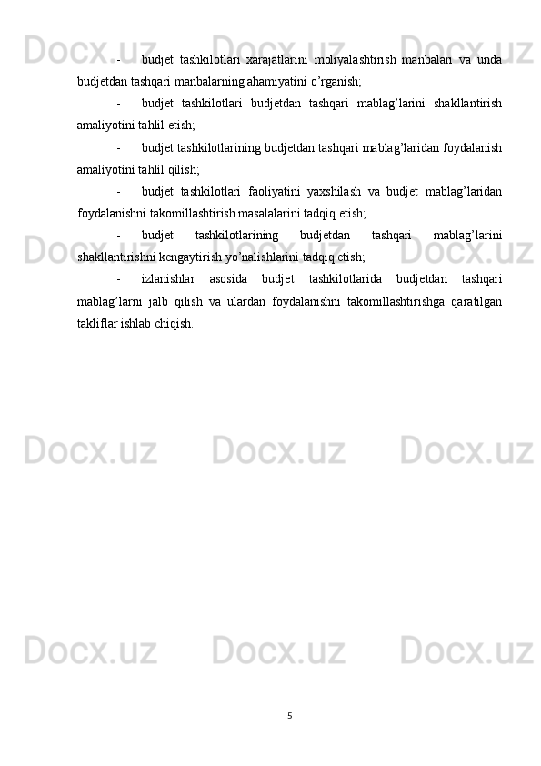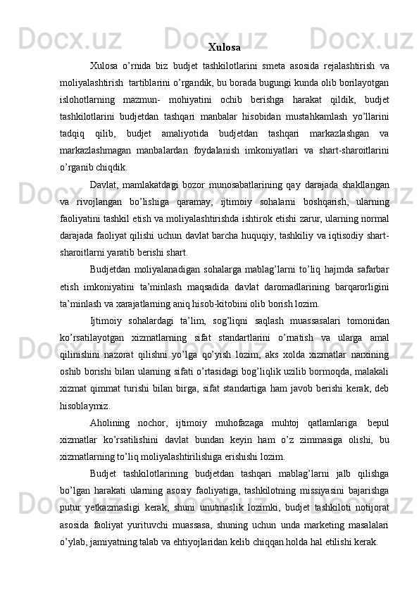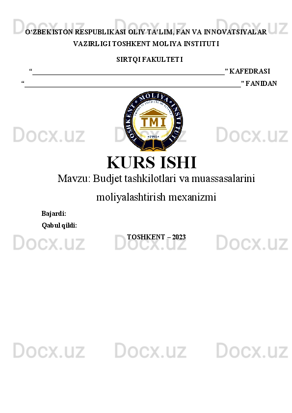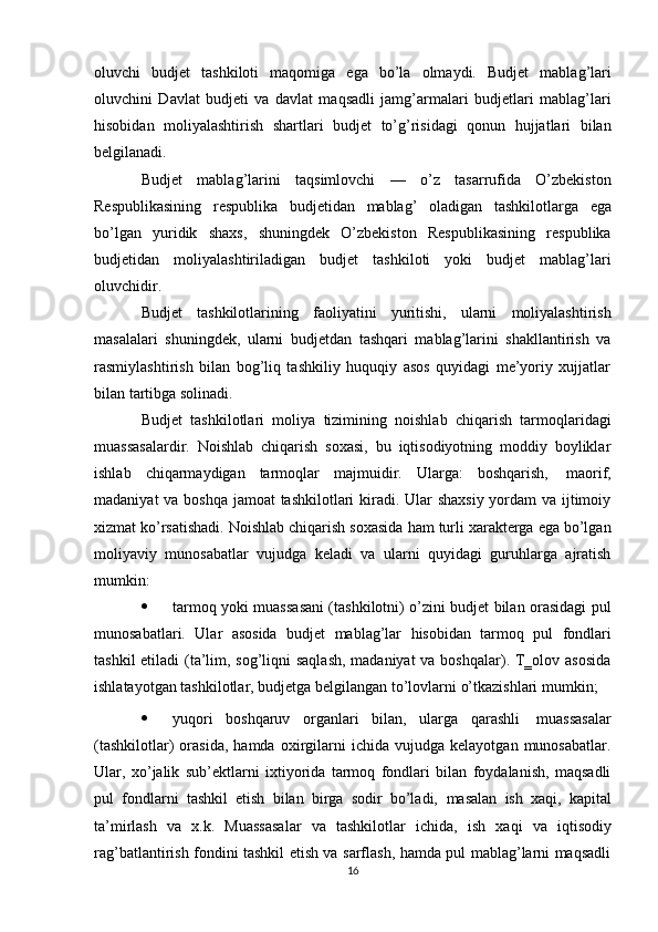 Budjet tashkilotlari va muassasalarini moliyalashtirish mexanizmi