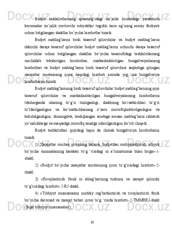 Budjet tashkilotlarida budjet hisobining tashkiliy-uslubiy jihatlari