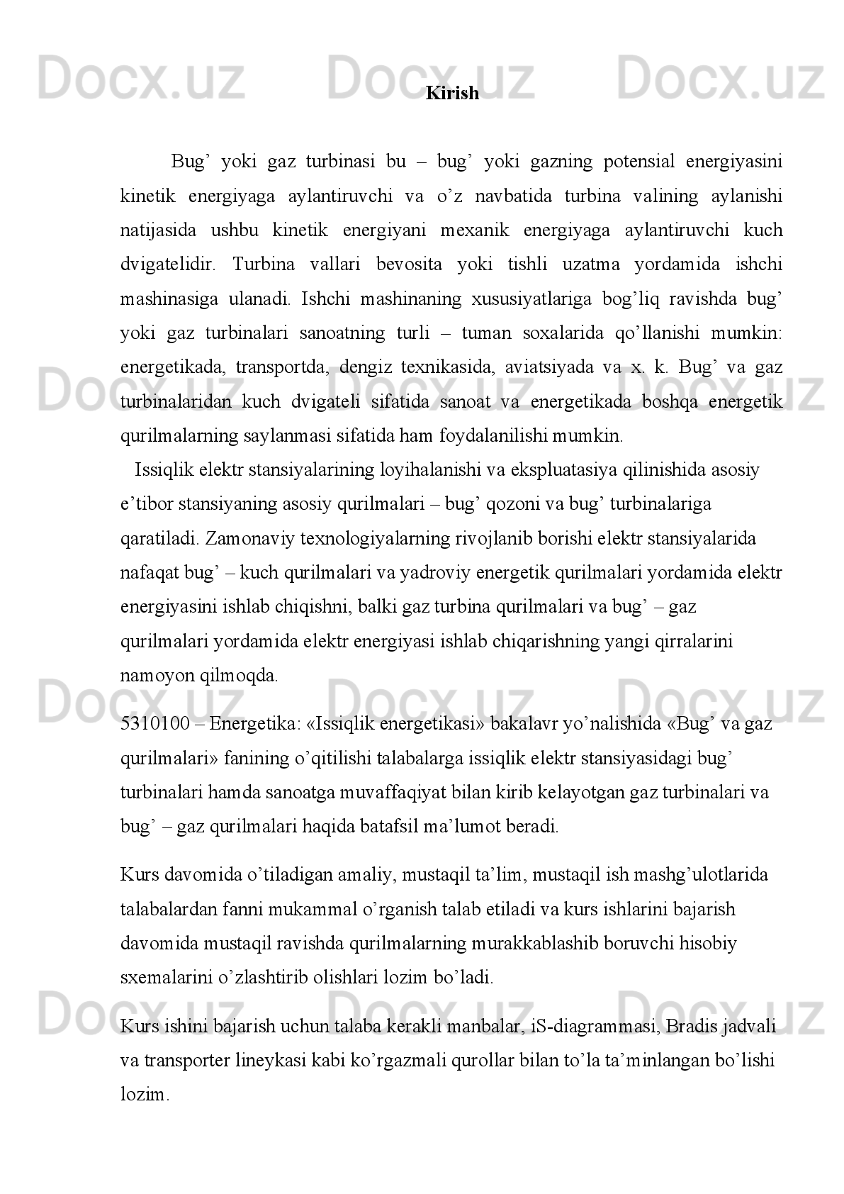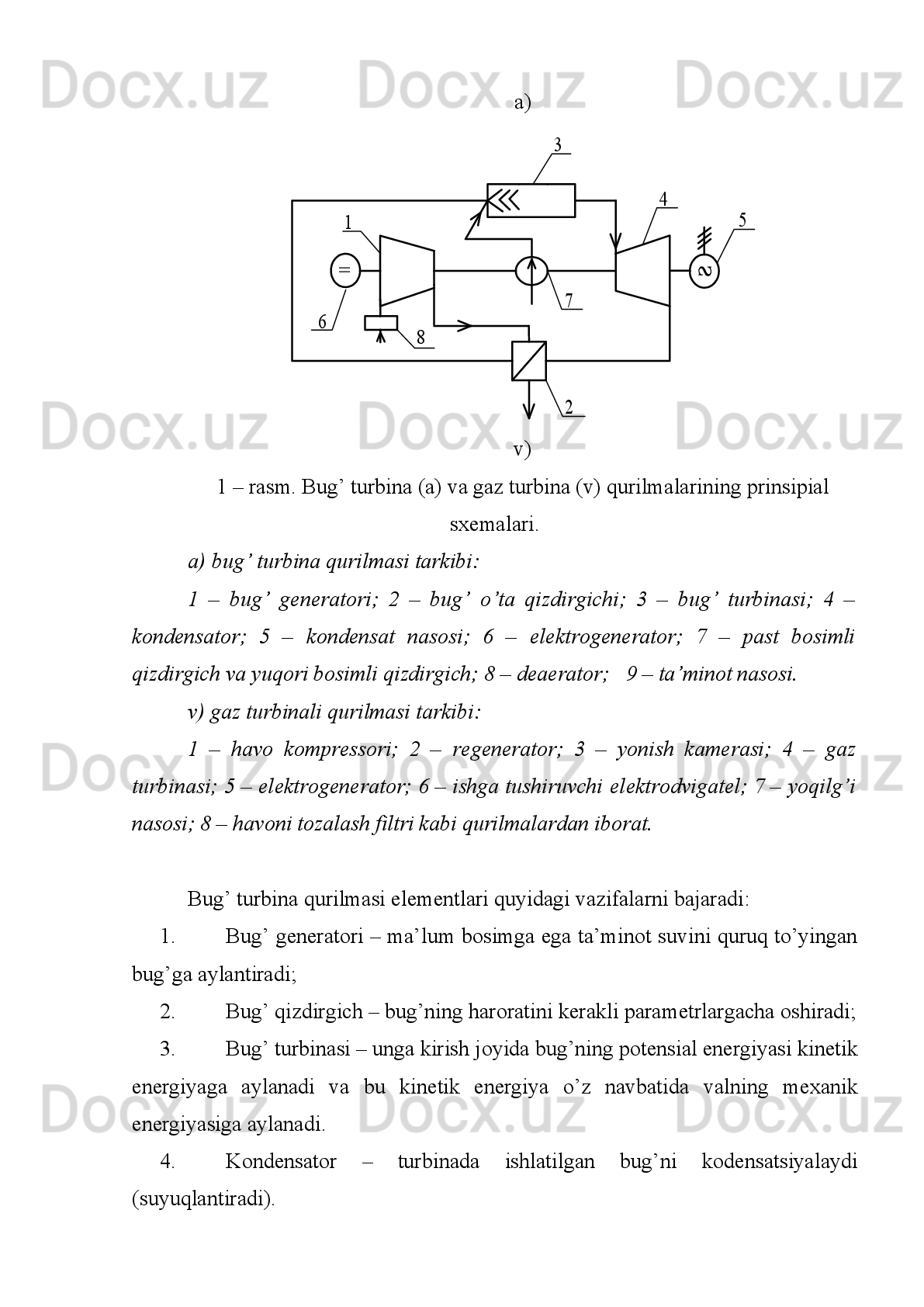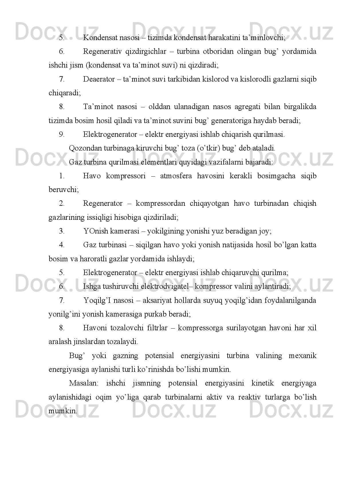 Bug’ turbinasining ishlash prinsipi turbinada bug’ning energiyasini mexanik energiyasi aylantirishning turli xil usullari