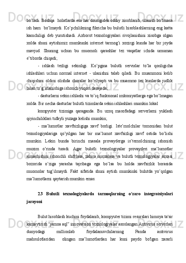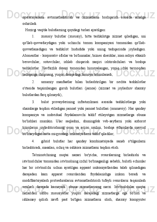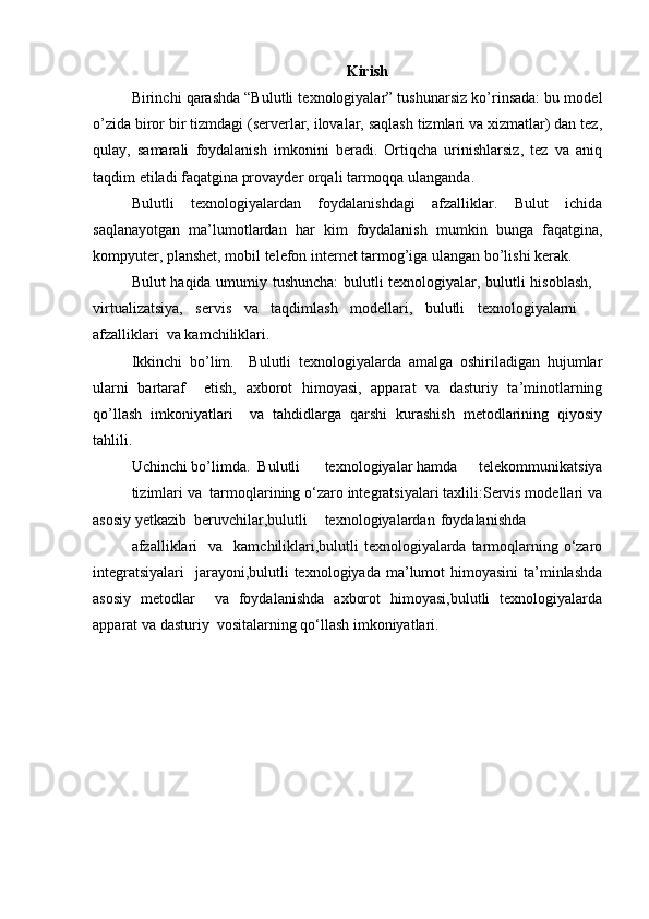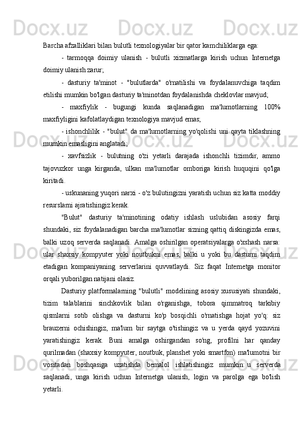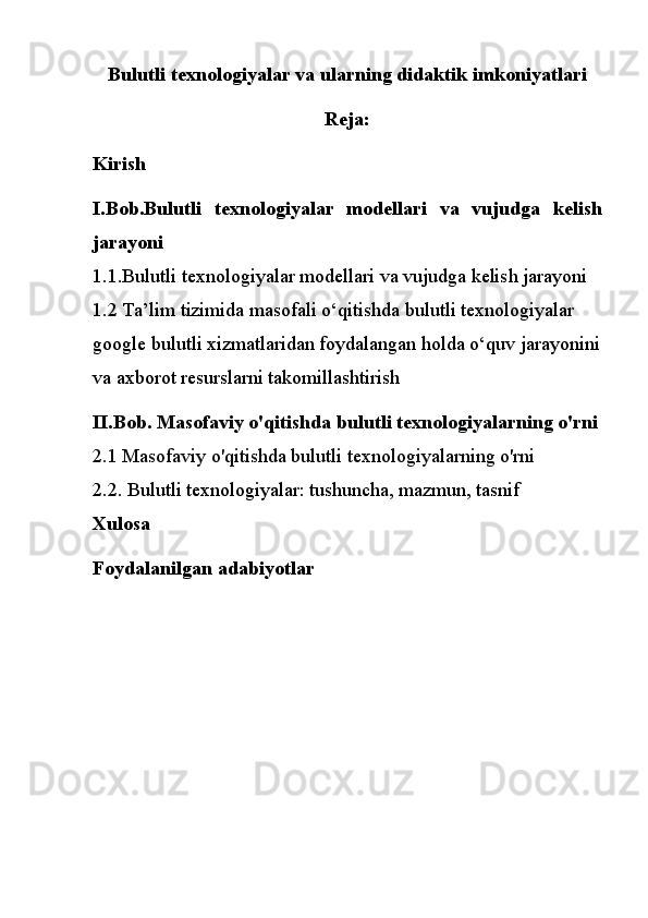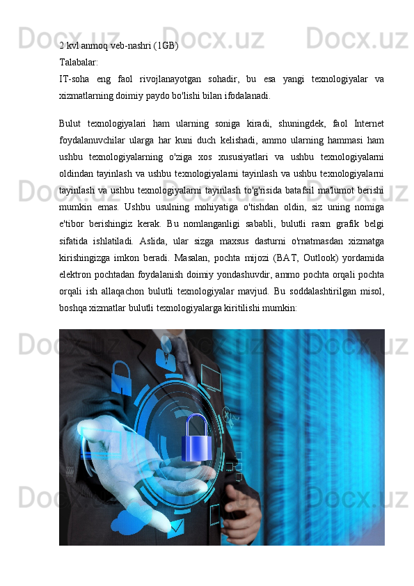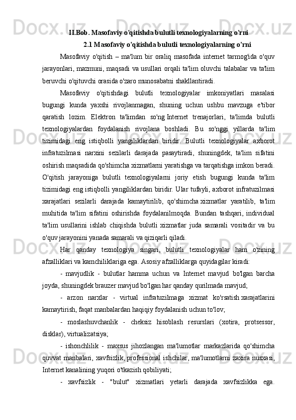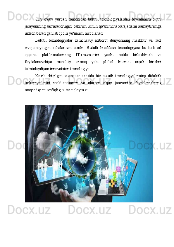 Bulutli texnologiyalar va ularni o'quv jarayoniga qo'llash