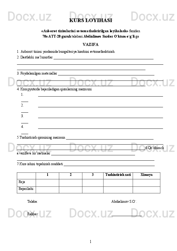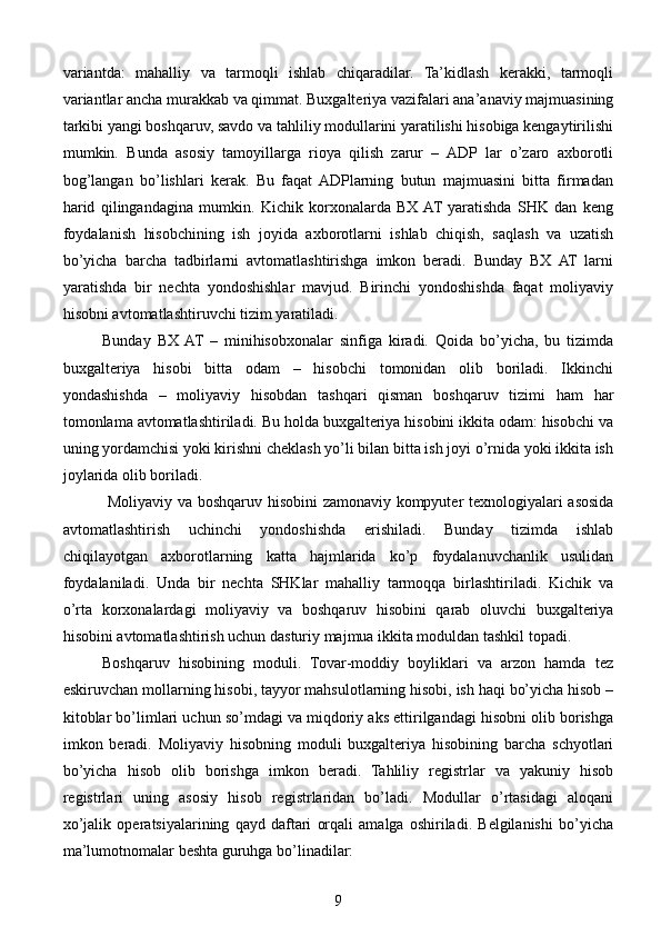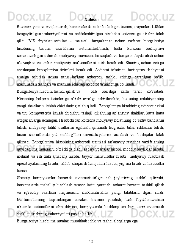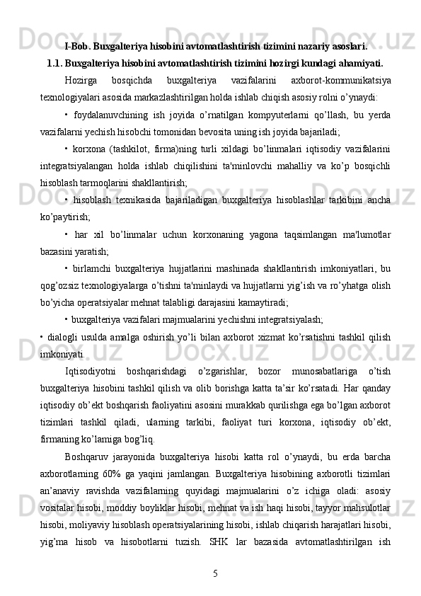 Buxgalteriya hisobini avtomatlashtirish tizimini loyihalash